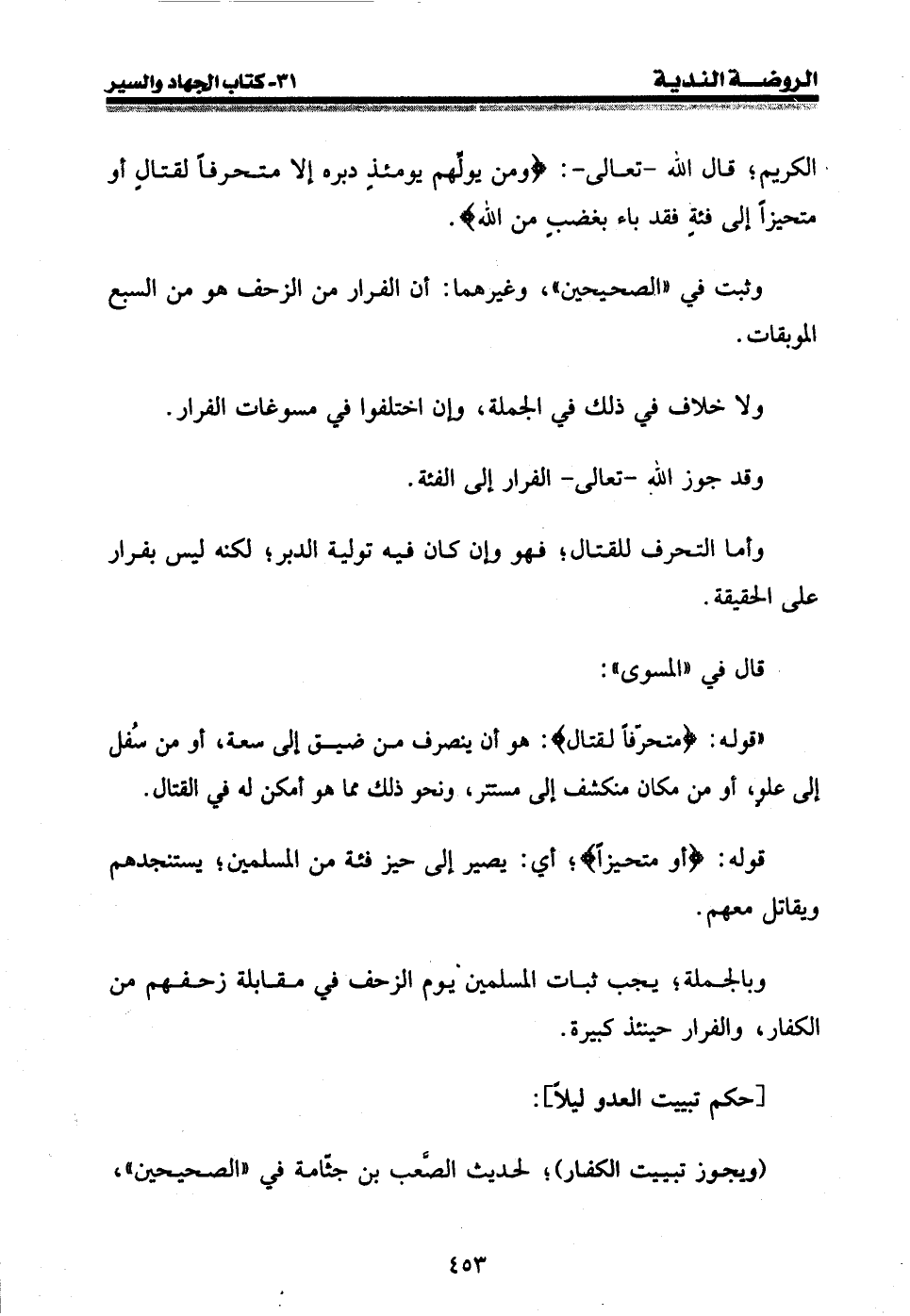الكريم؛ قال الله - تعالى -: {ومن يولهم يومئذ دبره إلا متحرفا لقتال أو متحيزا إلى فئة فقد باء بغضب من الله} .