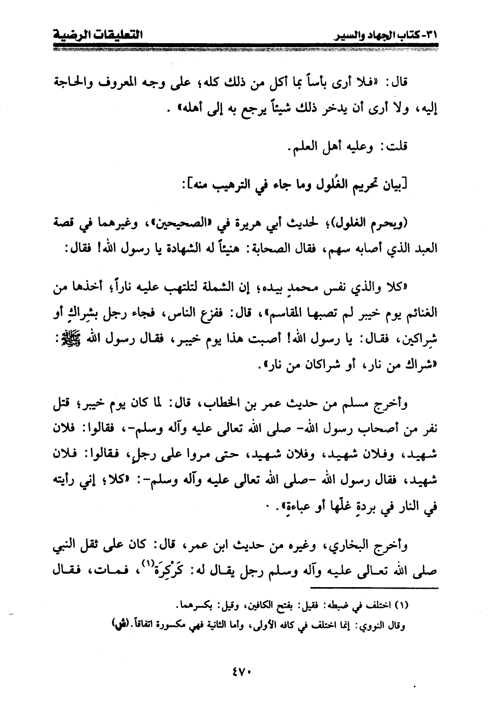 ( [بيان تحريم الغلول وما جاء في الترهيب منه] :)