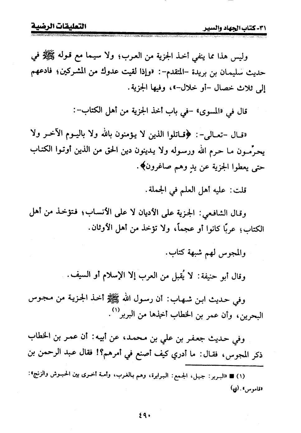 وفي حديث ابن شهاب: أن رسول الله صلى الله عليه وسلم أخذ الجزية من مجوس البحرين، وأن عمر بن الخطاب أخذها من البربر (¬1) .