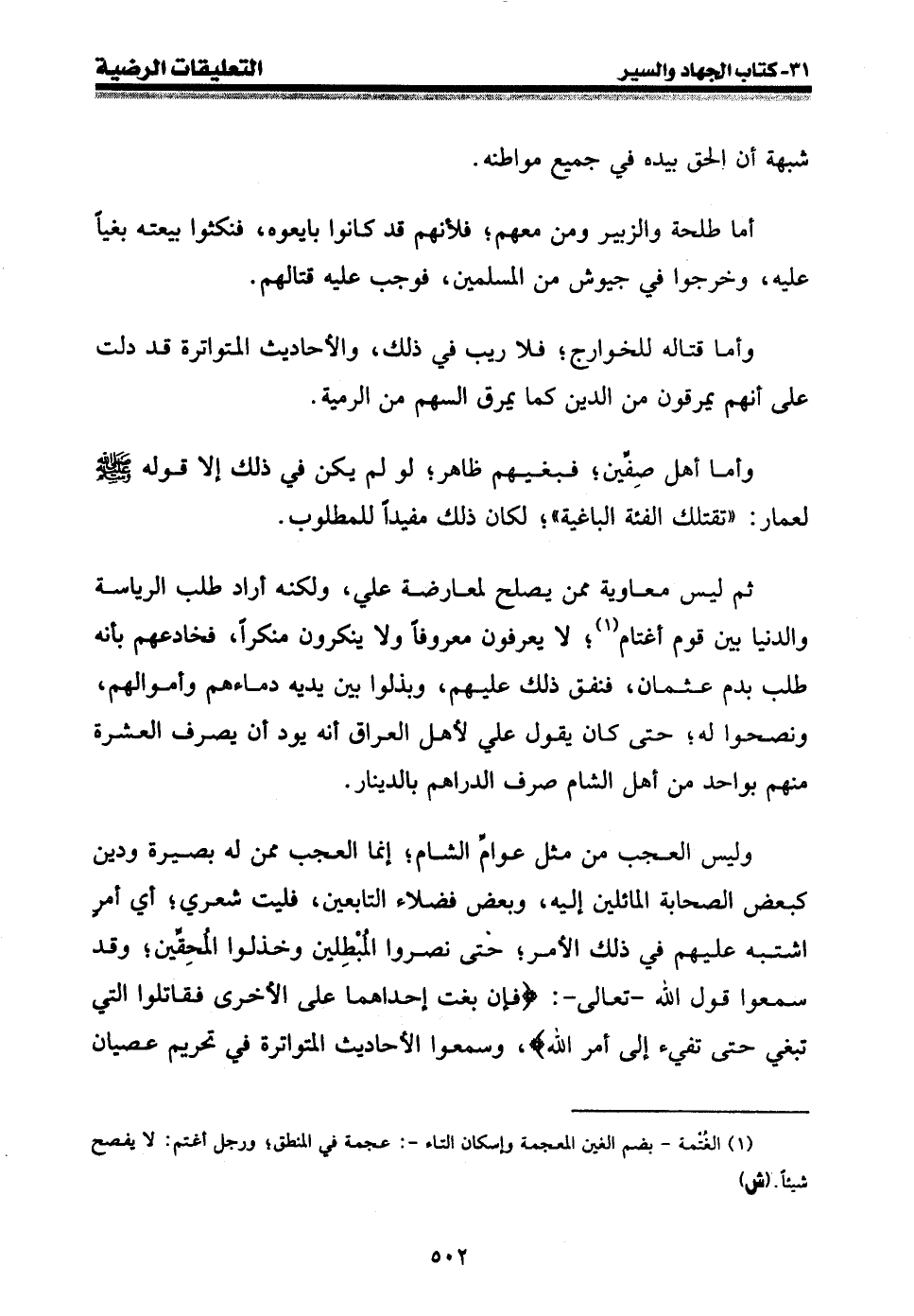 وليس العجب من مثل عوام الشام؛ إنما العجب ممن له بصيرة ودين كبعض الصحابة المائلين إليه، بعض فضلاء التابعين، فليت شعري؛ أي أمر اشتبه عليهم في ذلك الأمر؛ حتى نصروا المبطلين وخذلوا المحقين؛ وقد سمعوا قول الله - تعالى -: {فإن بغت إحداهما على الأخرى فقاتلوا التي تبغي حتى تفيء إلى أمر الله} ، وسمعوا الأحاديث المتواترة في تحريم عصيان