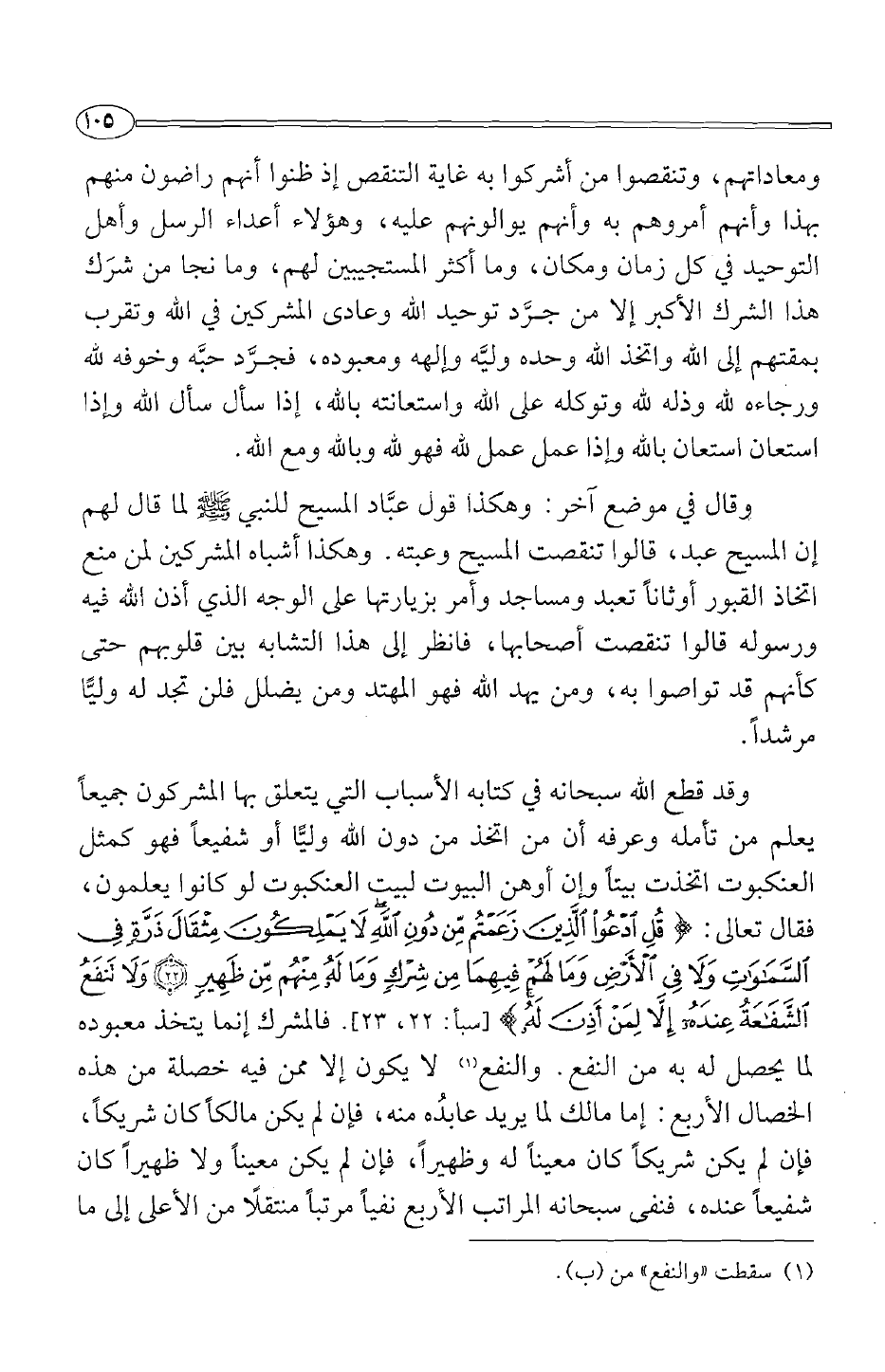 ومعاداتهم، وتنقصوا من أشركوا به غاية التنقص إذ ظنوا أنهم راضون منهم بهذا وأنهم أمروهم به وأنهم يوالونهم عليه، وهؤلاء أعداء الرسل وأهل التوحيد في كل زمان ومكان، وما أكثر المستجيبين لهم، وما نجا من شرك هذا الشرك الأكبر إلا من جرد توحيد الله وعادى المشركين في الله وتقرب بمقتهم إلى الله واتخذ الله وحده وليه وإلهه ومعبوده، فجرد حبه وخوفه لله ورجاءه لله وذله لله وتوكله على الله واستعانته بالله، إذا سأل سأل الله وإذا استعان استعان بالله وإذا عمل عمل لله فهو لله وبالله ومع الله.