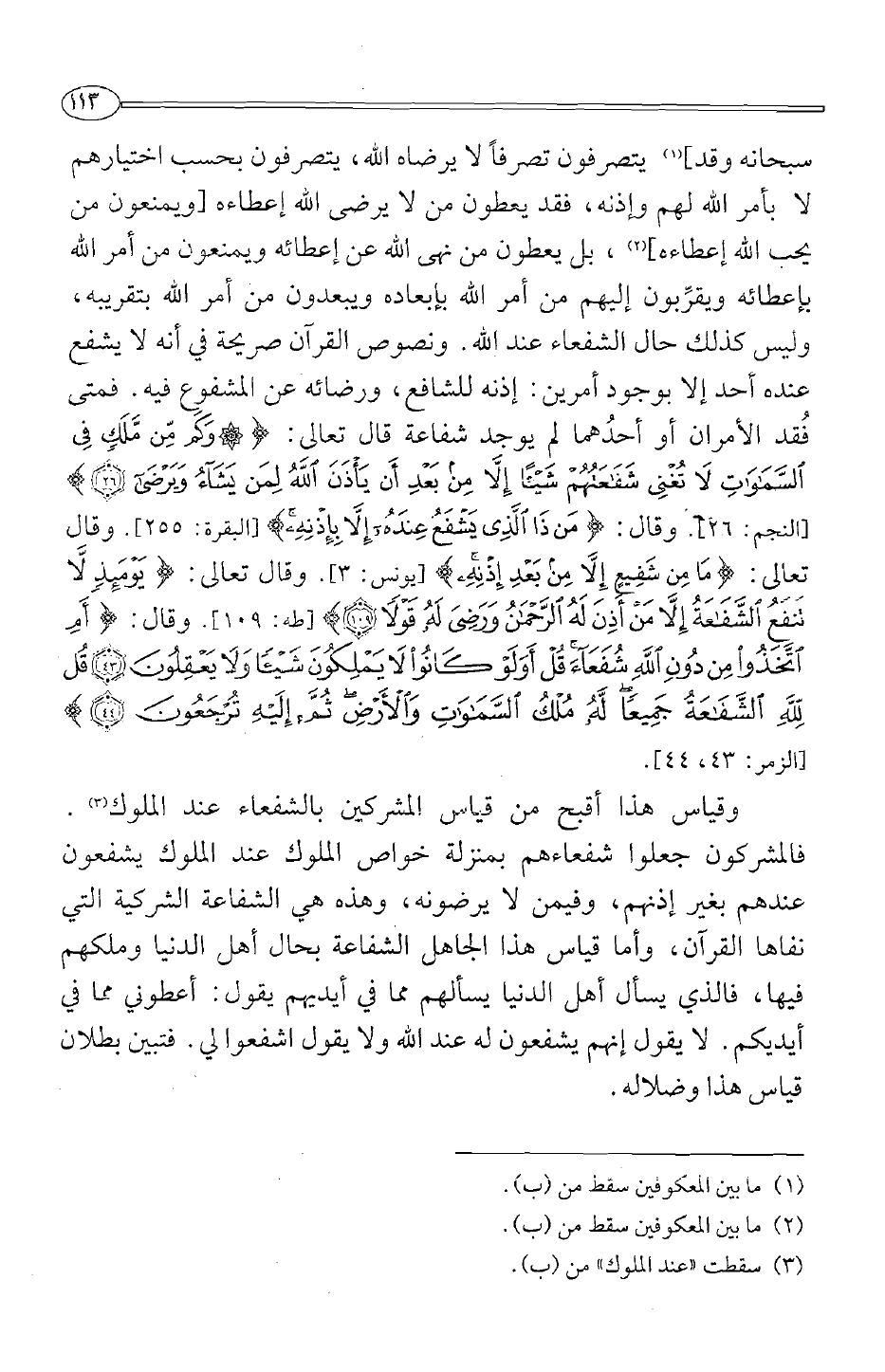 وقياس هذا أقبح من قياس المشركين بالشفعاء عند الملوك3. فالمشركون جعلوا شفعاءهم بمنزلة خواص الملوك عند الملوك يشفعون عندهم بغير إذنهم، وفيمن لا يرضونه، وهذه هي الشفاعة الشركية التي نفاها القرآن، وأما قياس هذا الجاهل الشفاعة بحال الدنيا وملكهم فيها، فالذي يسأل أهل الدنيا يسألهم مما في أيديهم يقول: أعطوني مما في أيديكم. لا يقول إنهم يشفعون له عند الله ولا يقول اشفعوا لي فتبين بطلان قياس هذا وضلاله.