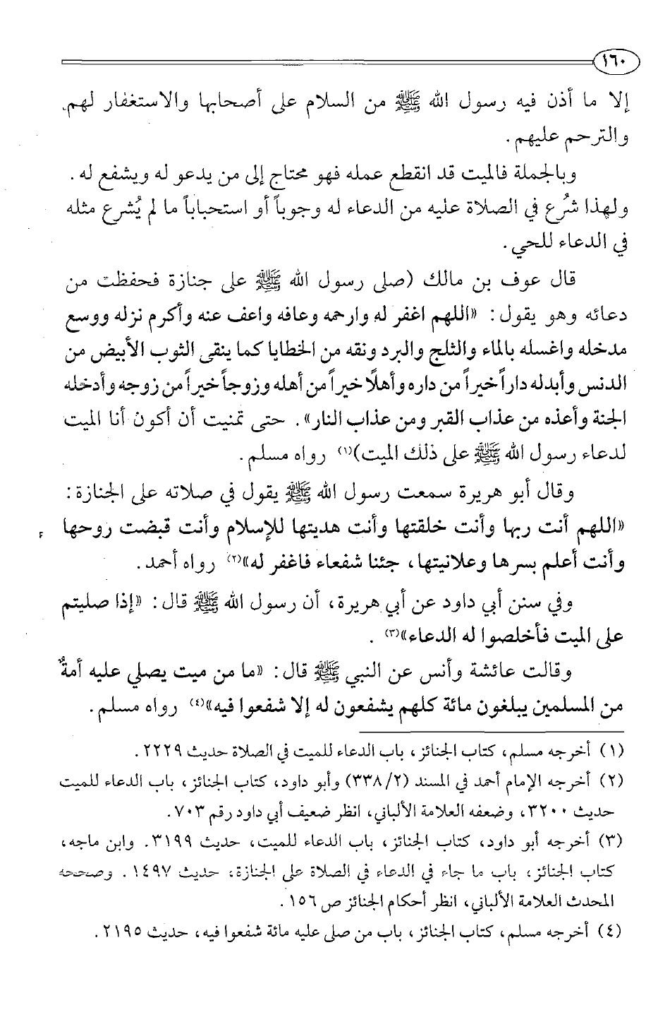 3 أخرجه أبو داود، كتاب الجنائز، باب الدعاء للميت، حديث 3199. وابن ماجه، كتاب الجنائز، باب ما جاء في الدعاء في الصلاة على الجنازة، حديث 1497. وصححه المحدث العلامة الألباني انظر أحكام الجنائز ص 156.