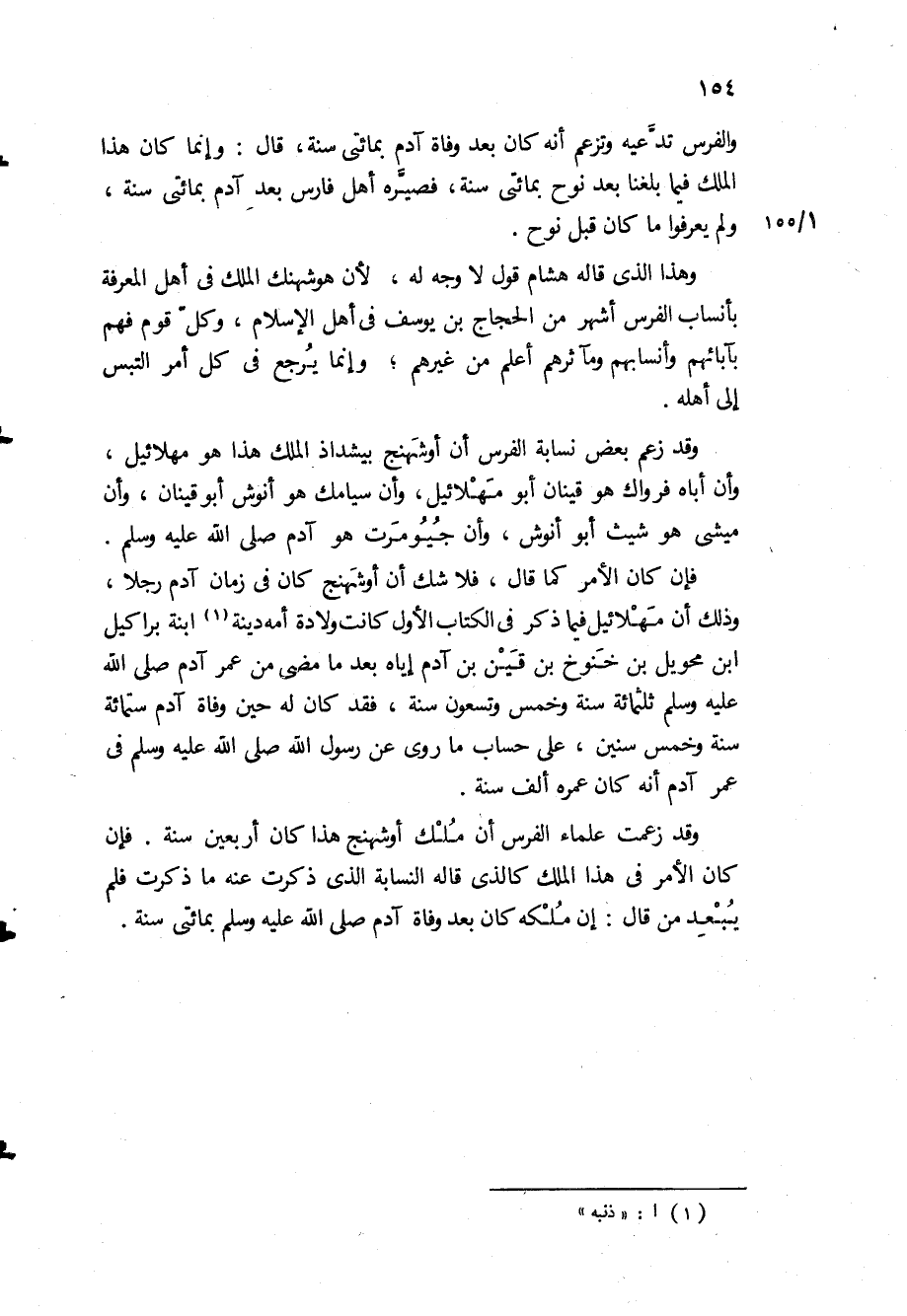 وَهَذَا الَّذِي قَالَهُ هِشَامٌ قَوْلٌ لا وَجْهَ لَهُ، لأَنَّ هوشهنكَ الْمِلكَ فِي أَهْلِ الْمَعْرِفَةِ بِأَنْسَابِ الْفُرْسِ أَشْهَرُ مِنَ الْحَجَّاجِ بْنِ يُوسُفَ فِي أَهْلِ الإِسْلامِ، وَكُلُّ قَوْمٍ فَهُمْ بِآبَائِهِمْ وَأَنْسَابِهِمْ وَمَآثِرِهِمْ أَعْلَمُ مِنْ غَيْرِهِمْ، وَإِنَّمَا يَرْجِعُ فِي كُلِّ أَمْرٍ الْتَبَسَ إِلَى أَهْلِهِ.