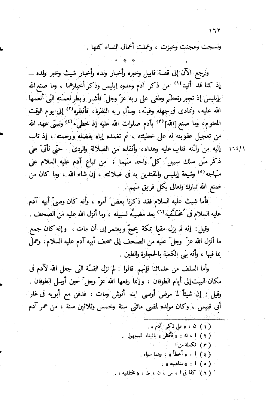 ونرجع الآن إلى قصة قابيل وخبره وأخبار ولده وأخبار شيث وخبر ولده- إذ كنا قد أتينا من ذكر آدم وعدوه إبليس وذكر أخبارهما، وما صنع الله بإبليس إذ تجبر وتعظم وطغى على ربه عز وجل فأشر وبطر نعمته التي أنعمها الله عليه، وتمادى في جهله وغيه، وسأل ربه النظرة، فأنظره إلى يوم الوقت المعلوم، وما صنع الله بآدم صلوات الله عليه إذ خطئ ونسي عهد الله من تعجيل عقوبته له على خطيئته، ثم تغمده إياه بفضله ورحمته، إذ تاب إليه من زلته فتاب عليه وهداه، وأنقذه من الضلالة والردى- حتى نأتي على ذكر من سلك سبيل كل واحد منهما، من تباع آدم ع على منهاجه وشيعة إبليس والمقتدين به في ضلالته، إن شاء الله، وما كان من صنع الله تبارك وتعالى بكل فريق منهم.