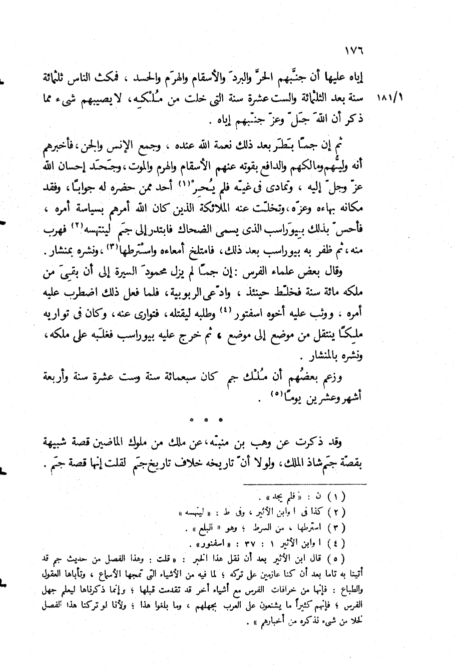 وقد ذكرت عن وهب بن منبه، عن ملك من ملوك الماضين قصة شبيهة بقصة جم شاذ الملك، ولولا أن تاريخه خلاف تاريخ جم لقلت إنها قصة جم