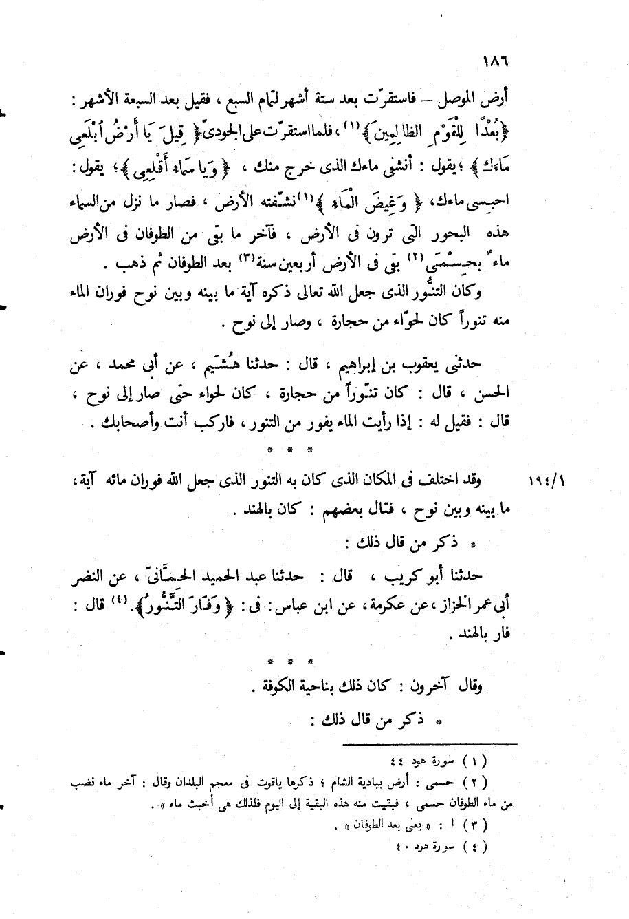 وقد اختلف في المكان الذي كان به التنور الذي جعل الله فوران مائه آية، ما بينه وبين نوح، فقال بعضهم: كان بالهند.