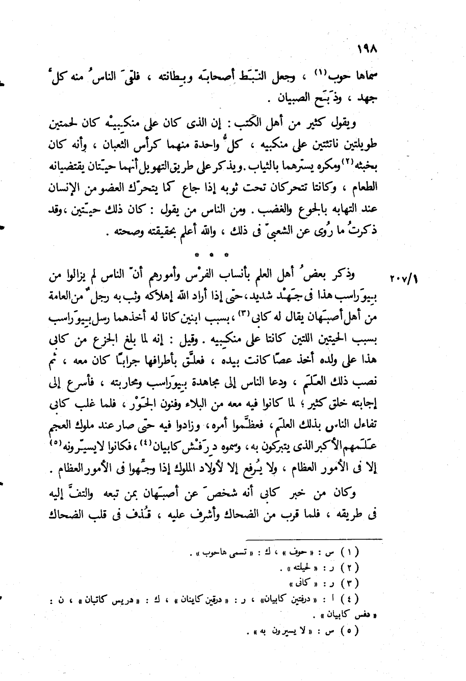 ويقول كثير من أهل الكتب: إن الذي كان على منكبيه كان لحمتين طويلتين ناتئتين على منكبيه، كل واحدة منهما كرأس الثعبان، وأنه كان بخبثه ومكره يسترهما بالثياب ويذكر على طريق التهويل أنهما حيتان يقتضيانه الطعام، وكانتا تتحركان تحت ثوبه إذا جاع كما يتحرك العضو من الإنسان عند التهابه بالجوع والغضب ومن الناس من يقول: كان ذلك حيتين، وقد ذكرت ما روي عن الشعبي في ذلك، والله أعلم بحقيقته وصحته.