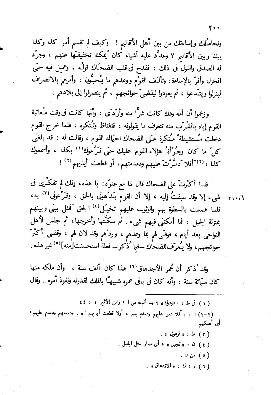 وتحاملك وإساءتك من بين أهل الأقاليم! وكيف لم تقسم أمر كذا وكذا بيننا وبين الأقاليم؟ وعدد عليه أشياء كان يمكنه تخفيفها عنهم، وجرد له الصدق والقول في ذلك، فقدح في قلب الضحاك قوله، وعمل فيه حتى انخزل وأقر بالإساءة، وتألف القوم ووعدهم ما يحبون، وأمرهم بالانصراف لينزلوا ويتدعوا، ثم يعودوا ليقضي حوائجهم، ثم ينصرفوا إلى بلادهم.