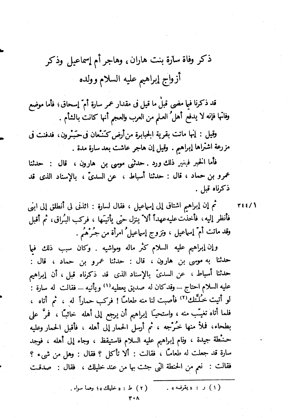 وقيل: إنها ماتت بقرية الجبابرة من أرض كنعان في حبرون، فدفنت في مزرعة اشتراها إبراهيم وقيل إن هاجر عاشت بعد سارة مدة فأما الخبر فبغير ذلك ورد حَدَّثَنِي موسى بن هارون، قال: حدثنا عمرو بن حماد، قال: حَدَّثَنَا أسباط، عن السدي، بالإسناد الذي قد ذكرناه قبل.