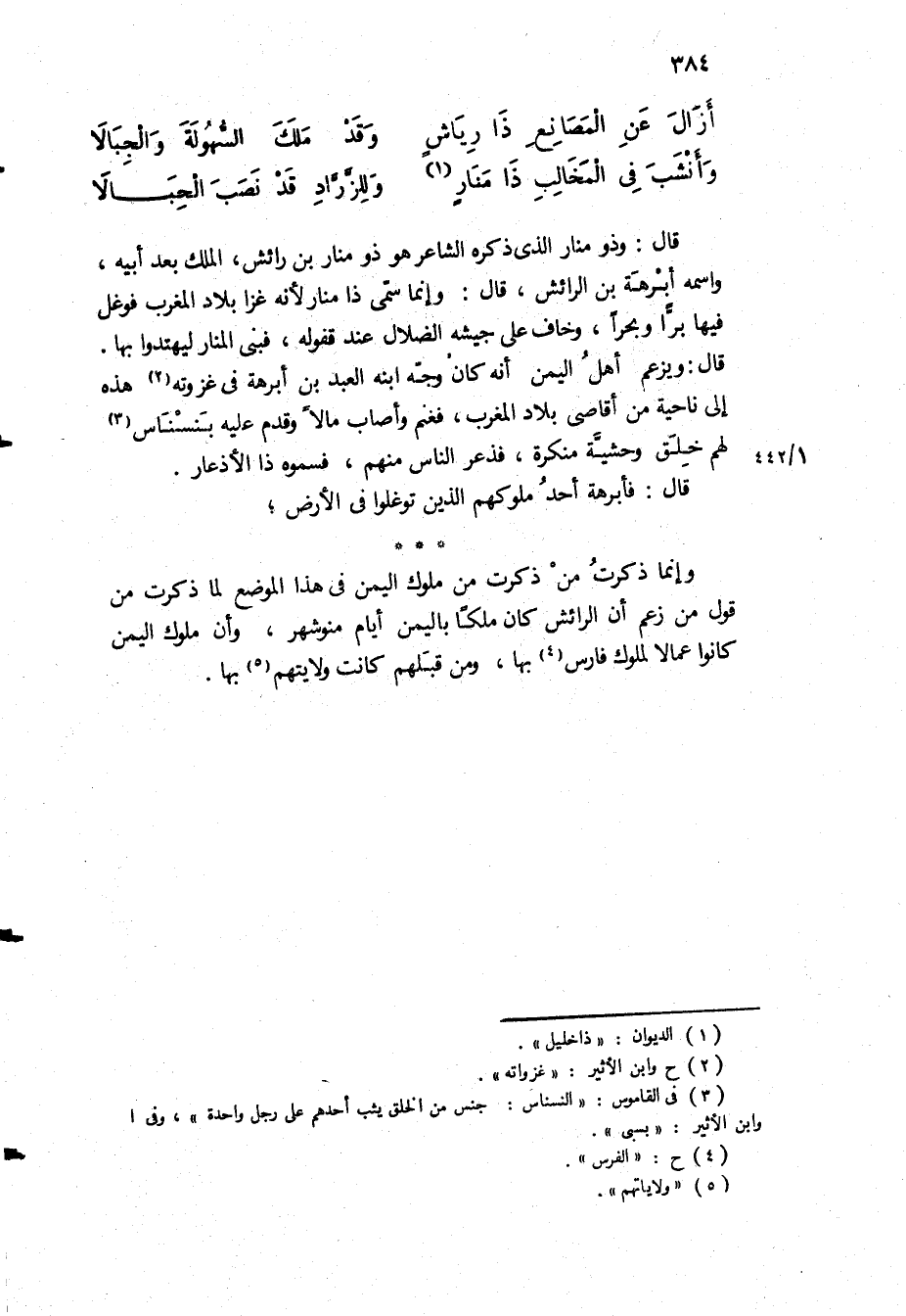 قَالَ: وذو منار الذي ذكره الشاعر هو ذو منار بن رائش، الملك بعد أبيه، واسمه أبرهة بن الرائش، قَالَ: وإنما سمي ذا منار لأنه غزا بلاد المغرب فوغل فيها برا وبحرا، وخاف على جيشه الضلال عند قفوله، فبنى المنار ليهتدوا بها.