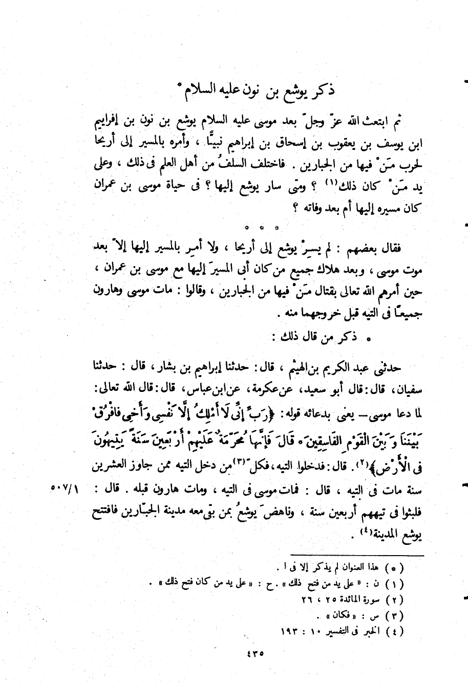 ثم ابتعث الله عز وجل بعد موسى ع يوشع بن نون بن افراييم ابن يوسف بن يعقوب بن إسحاق بن إبراهيم نبيا، وأمره بالمسير إلى أريحا لحرب من فيها من الجبارين فاختلف السلف من أهل العلم في ذلك، وعلى يد من كان ذلك؟ ومتى سار يوشع إليها؟ في حياة موسى بن عمران كان مسيره إليها أم بعد وفاته؟
