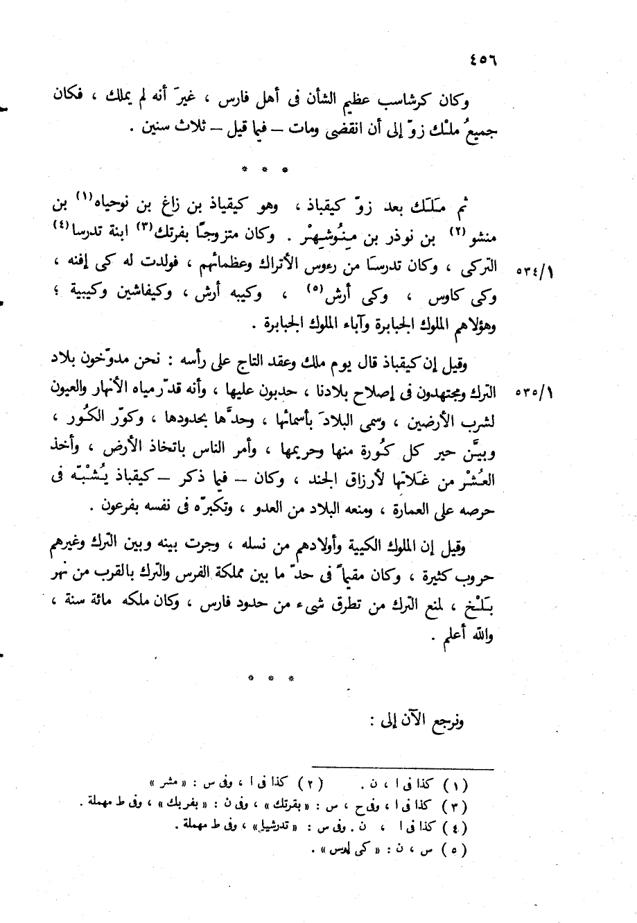 وكان كرشاسب عظيم الشأن في أهل فارس، غير أنه لم يملك، فكان جميع ملك زو إلى أن انقضى ومات- فيما قيل- ثلاث سنين.