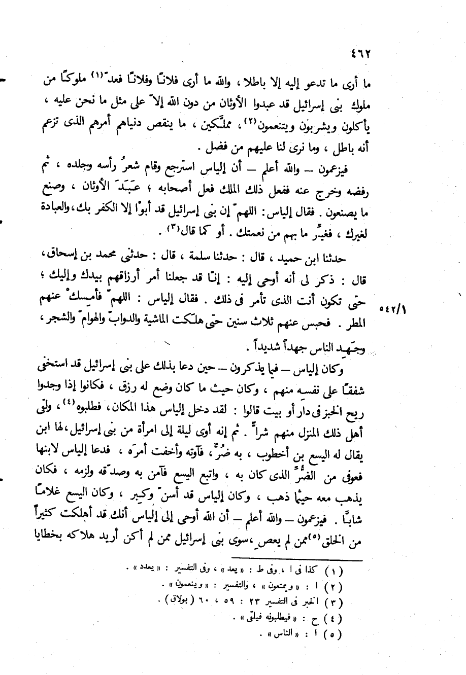 فيزعمون- والله أعلم- أن إلياس استرجع وقام شعر رأسه وجلده، ثم رفضه وخرج عنه ففعل ذلك الملك فعل أصحابه، عبد الأوثان، وصنع ما يصنعون فقال إلياس: اللهم إن بني إسرائيل قد أبوا إلا الكفر بك، والعبادة لغيرك، فغير ما بهم من نعمتك أو كما قال.