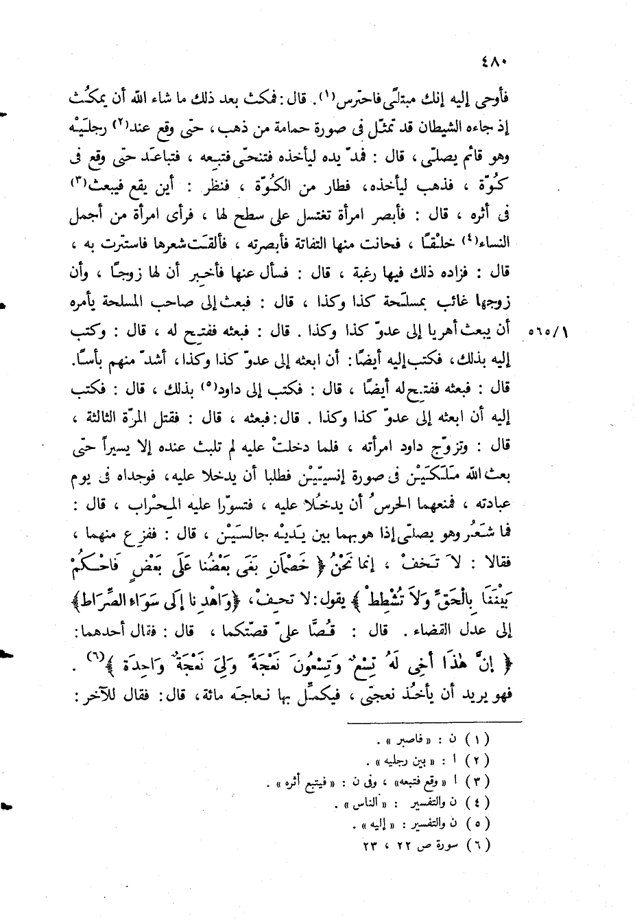 «إِنَّ هَذَا أَخِي لَهُ تِسْعٌ وَتِسْعُونَ نَعْجَةً وَلِيَ نَعْجَةٌ واحِدَةٌ» .