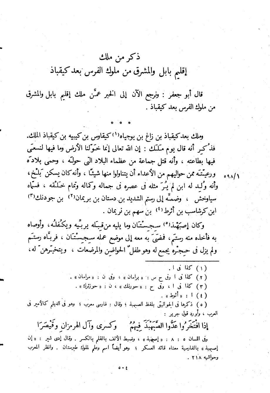 قَالَ أبو جعفر: ونرجع الآن إلى الخبر عمن ملك إقليم بابل والمشرق من ملوك الفرس بعد كيقباذ.