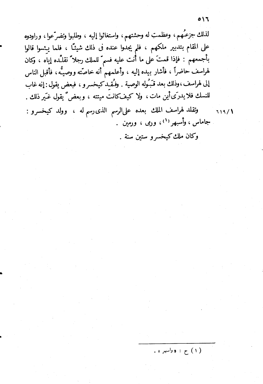 لذلك جزعهم، وعظمت له وحشتهم، واستغاثوا إليه، وطلبوا وتضرعوا، وراودوه على المقام بتدبير ملكهم، فلم يجدوا عنده في ذلك شيئا، فلما يئسوا قَالُوا بأجمعهم: فإذا قمت على ما أنت عليه فسم للملك رجلا نقلده إياه، وكان لهراسف حاضرا، فأشار بيده إليه، وأعلمهم أنه خاصته ووصيه، فأقبل الناس إلى لهراسف، وذلك بعد قبوله الوصية وفقد كيخسرو، فبعض يقول: إنه غاب للنسك فلا يدرى أين مات، ولا كيف كانت ميتته، وبعض يقول غير ذلك.