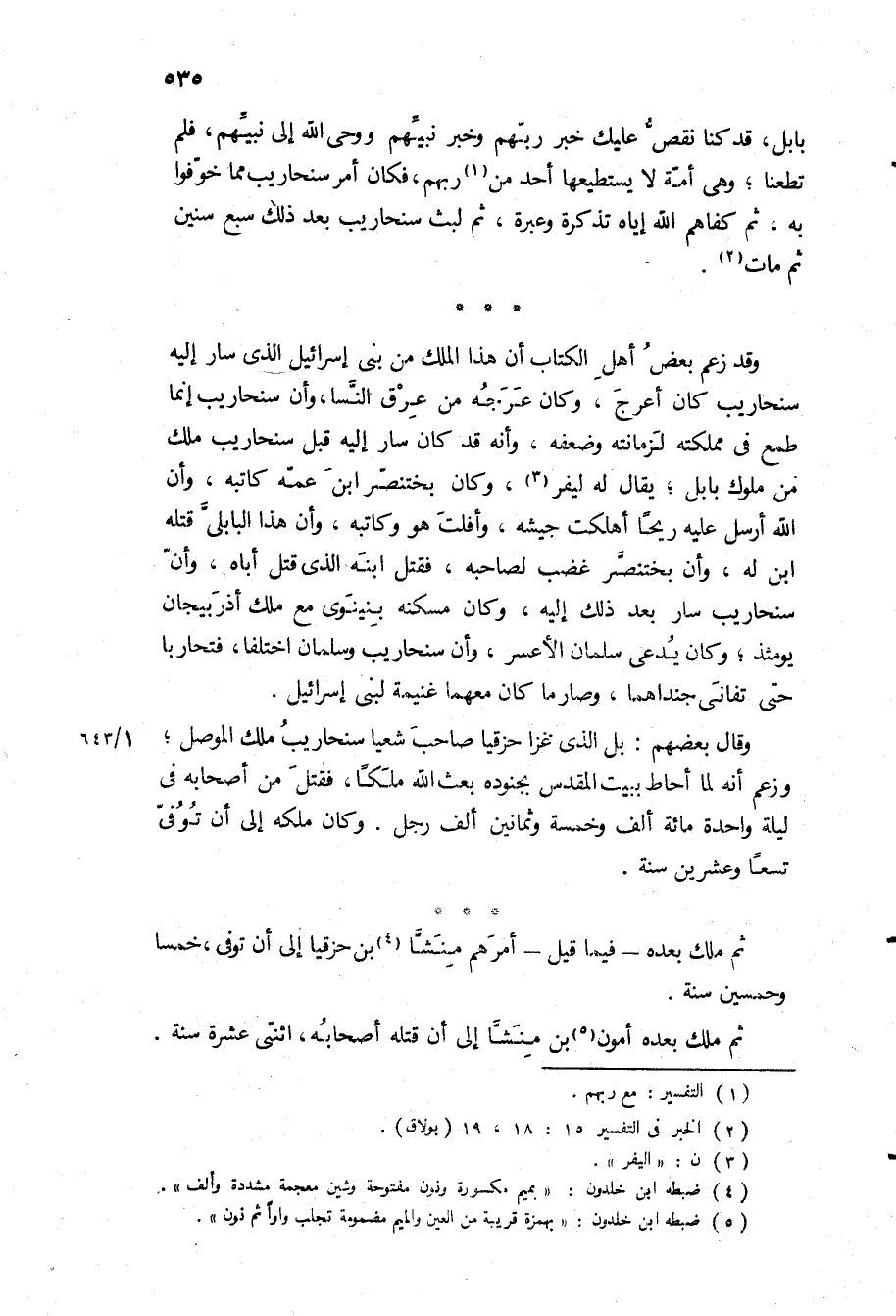 بابل، قد كنا نقص عليك خبر ربهم وخبر نبيهم ووحي الله إلى نبيهم، فلم تطعنا، وهي أمة لا يستطيعها أحد من ربهم، فكان أمر سنحاريب مما خوفوا به، ثم كفاهم الله إياه تذكرة وعبرة، ثم لبث سنحاريب بعد ذلك سبع سنين ثم مات.