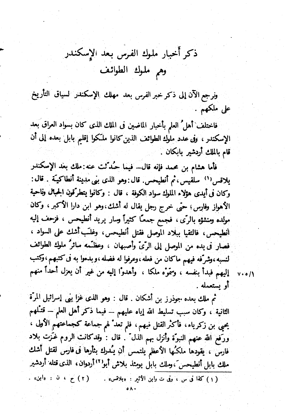 فاختلف أهل العلم بأخبار الماضين في الملك الذي كان بسواد العراق بعد الإسكندر، وفي عدد ملوك الطوائف الذين كانوا ملكوا إقليم بابل بعده إلى أن قام بالملك أردشير بابكان.