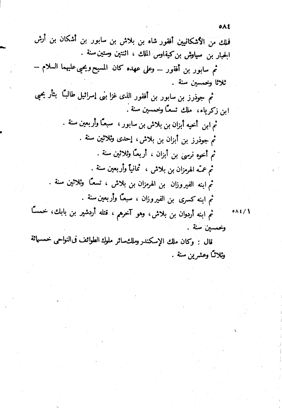 ثم سابور بن أفقور- وعلى عهده كان المسيح ويحيى ع- ثلاثا وخمسين سنة.