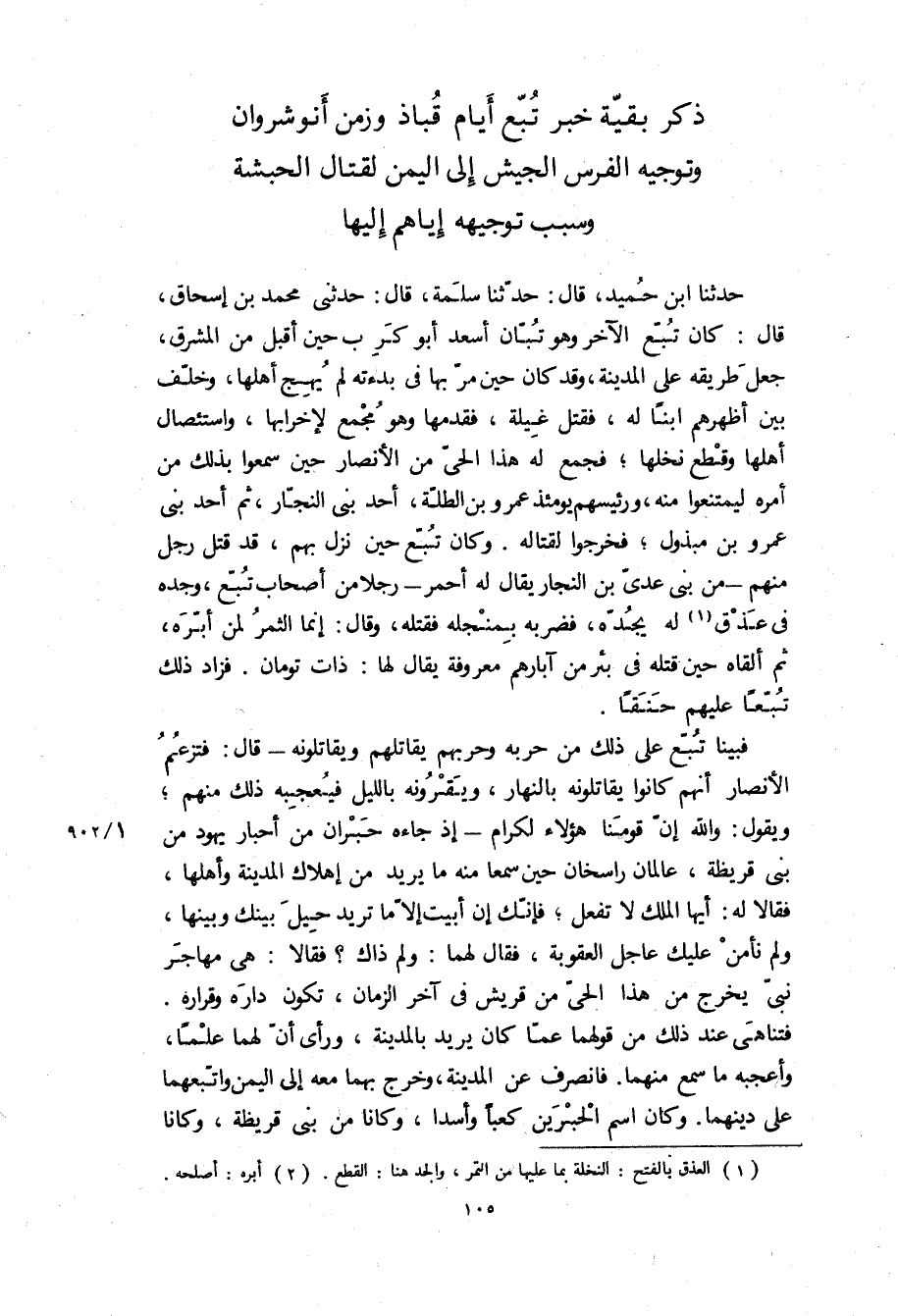 ذكر بقية خبر تبع أيام قباذ وزمن أنوشروان وتوجيه الفرس الجيش إلى اليمن لقتال الحبشة وسبب توجيهه إياهم إليها
