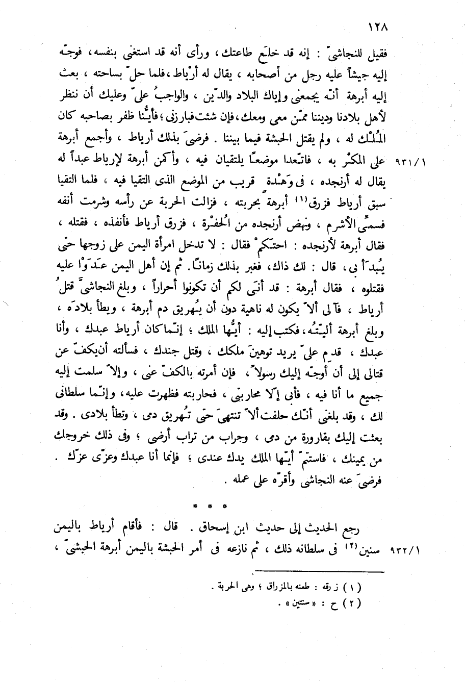 رجع الحديث إلى حديث ابن إسحاق قَالَ: فأقام أرياط باليمن سنين في سلطانه ذلك، ثم نازعه في أمر الحبشة باليمن أبرهة الحبشي،