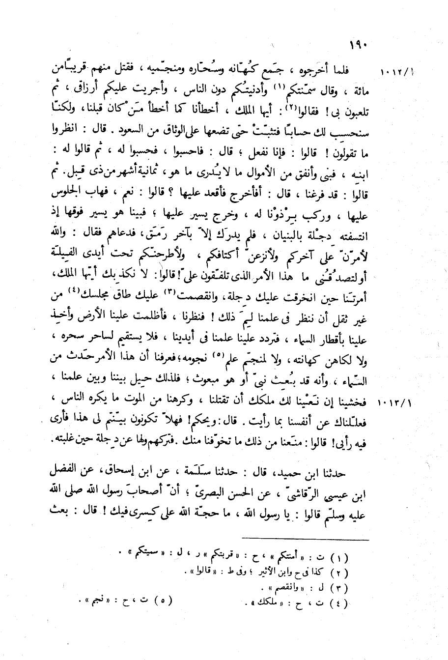 فلما أخرجوه، جمع كهانه وسحاره ومنجميه، فقتل منهم قريبا من مائة، وقال سمنتكم وأدنيتكم دون الناس، وأجريت عليكم أرزاقي، ثم تلعبون بي! فقالوا: أيها الملك، أخطأنا كما أخطأ من كان قبلنا، ولكنا سنحسب لك حسابا فتثبت حتى تضعها على الوثاق من السعود قَالَ: انظروا ما تقولون! قَالُوا: فإنا نفعل، قَالَ: فاحسبوا، فحسبوا له، ثم قَالُوا له: