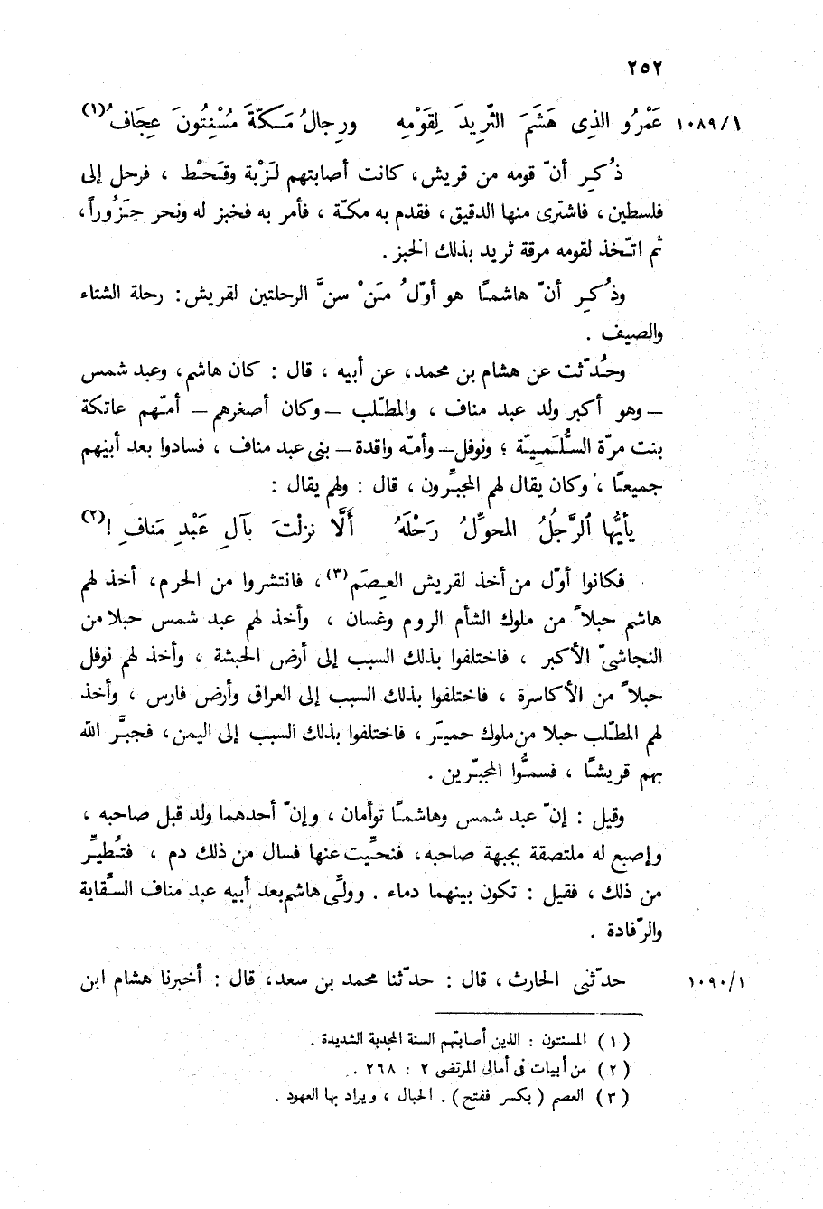وذكر أن هاشما هو أول من سن الرحلتين لقريش: رحلة الشتاء والصيف.