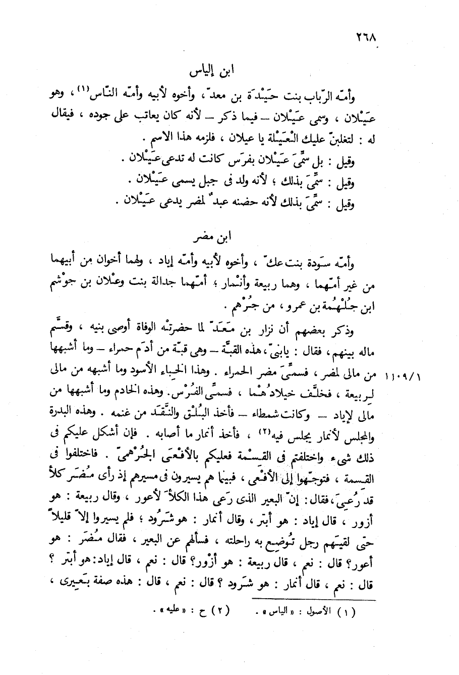وأمه الرباب بنت حيدة بن معد، واخوه لأبيه وأمه الناس، وهو عيلان، وسمي عيلان- فيما ذكر- لأنه كان يعاتب على جوده، فيقال له: لتغلبن عليك العيلة يا عيلان، فلزمه هذا الاسم.