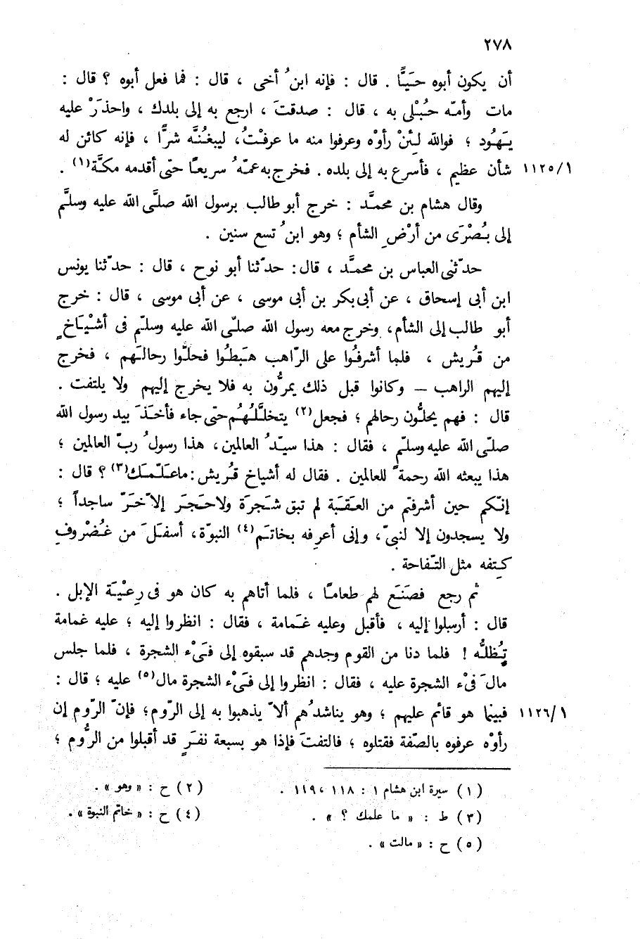 وقال هشام بن محمد: خرج ابو طالب برسول الله ص إلى بصرى من أرض الشام، وهو ابن تسع سنين.