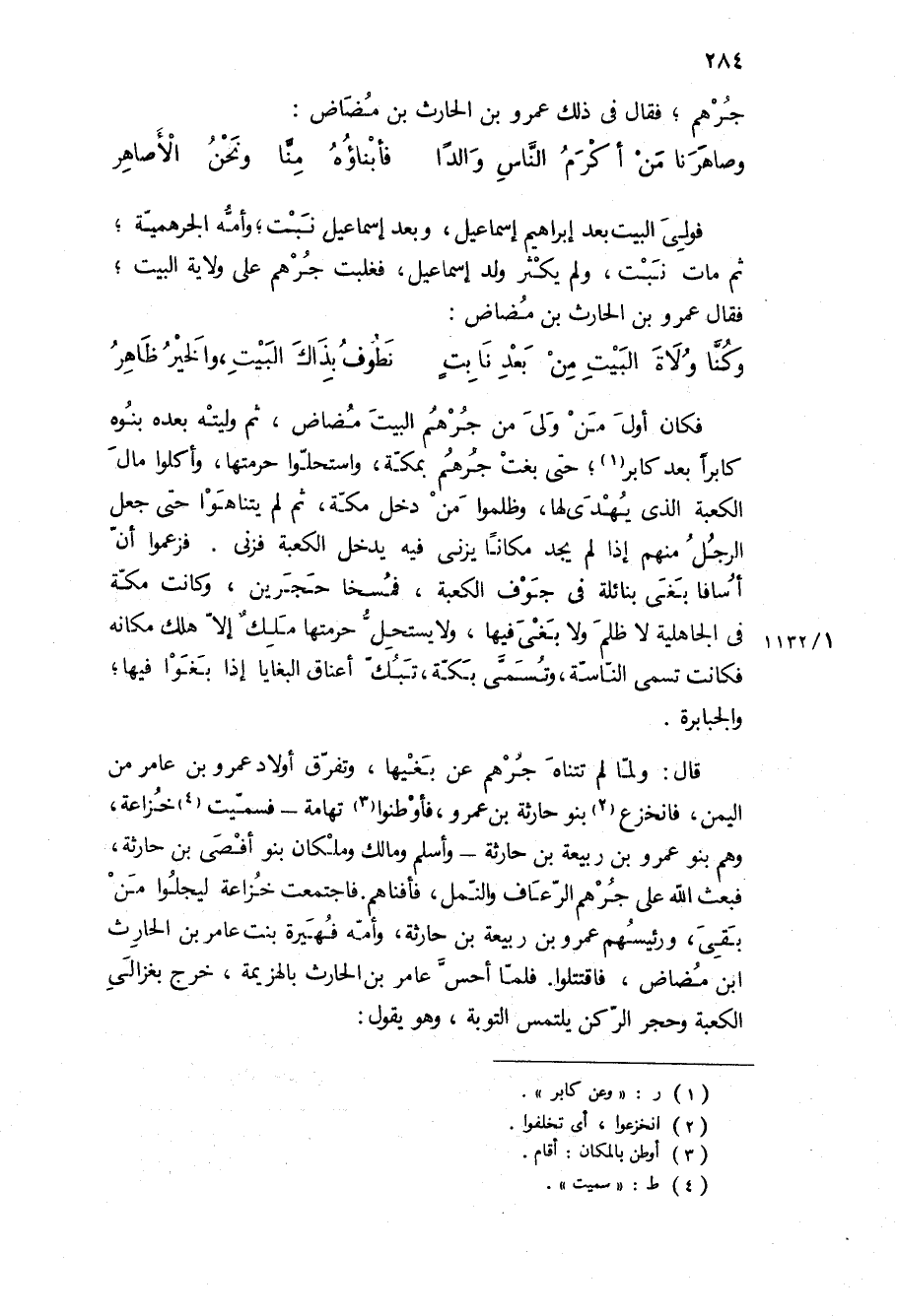 جرهم، فقال في ذلك عمرو بن الحارث بن مضاض: