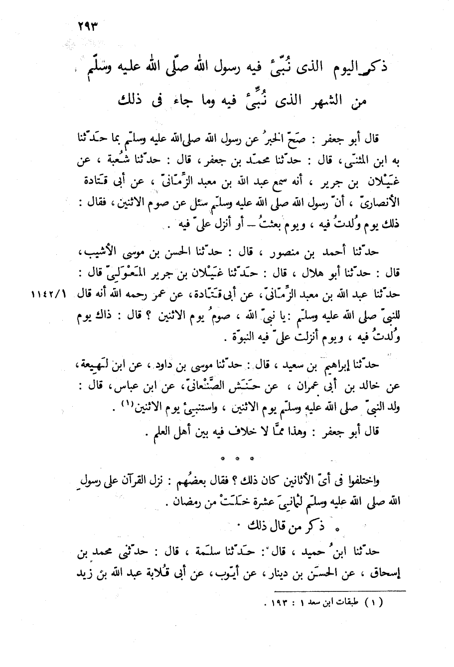 وُلِدَ النَّبِيُّ ص يَوْمَ الاثْنَيْنِ، وَاسْتُنْبِئَ يَوْمَ الاثْنَيْنِ.