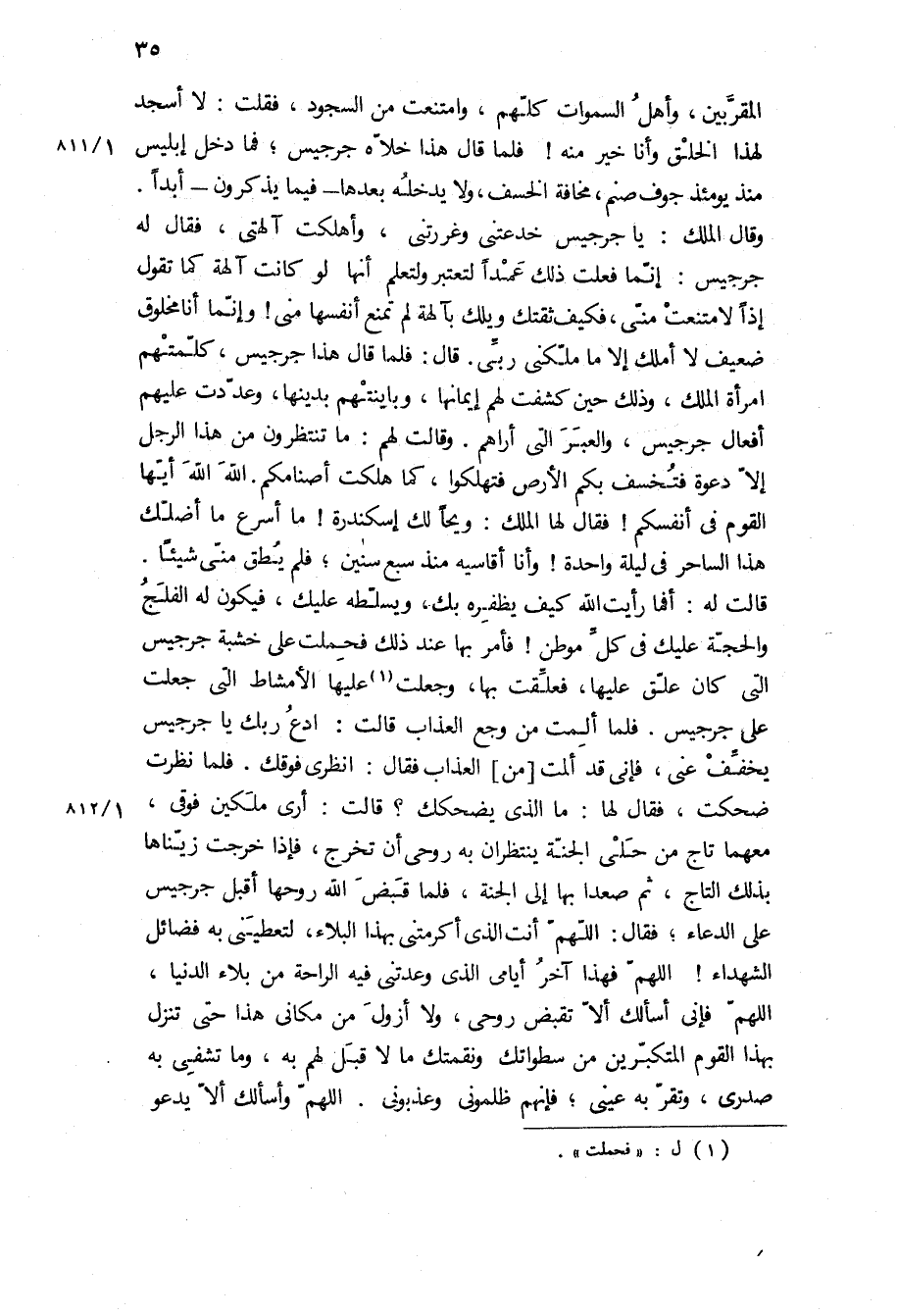 المقربين، وأهل السموات كلهم، وامتنعت من السجود، فقلت: لا أسجد لهذا الخلق وأَنَا خَيْرٌ مِنْهُ! * فلما قَالَ هذا خلاه جرجيس، فما دخل إبليس منذ يومئذ جوف صنم، مخافة الخسف، ولا يدخله بعدها- فيما يذكرون- أبدا.