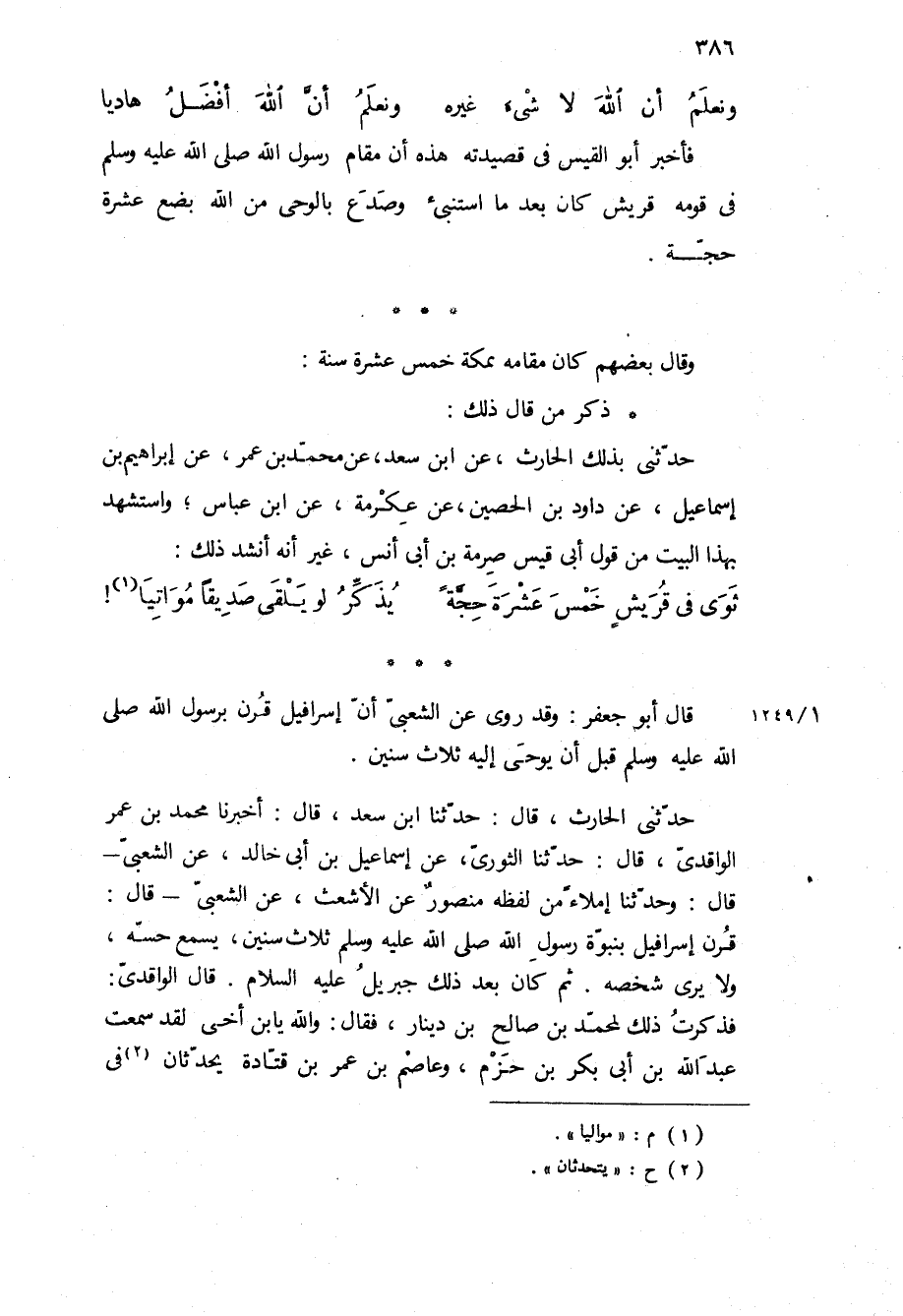 حدثني بذلك الْحَارِثُ، عَنِ ابْنِ سَعْدٍ، عَنْ مُحَمَّدِ بْنِ عمر، عن إبراهيم بن إسماعيل، عَنْ دَاوُدَ بْنِ الْحُصَيْنِ، عَنْ عِكْرِمَةَ، عَنِ ابن عباس، واستشهد بهذا البيت من قول أبي قيس صرمة بن أبي أنس، غير أنه أنشد ذلك: