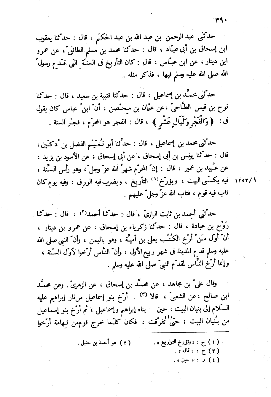 حَدَّثَنِي أَحْمَدُ بْنُ ثَابِت الرازي، قَالَ: حَدَّثَنَا أحمد، قَالَ: حَدَّثَنَا روح بن عبادة، قَالَ: حَدَّثَنَا زكرياء بن إسحاق، عن عمرو بن دينار، أن أول من أرخ الكتب يعلى بن اميه، وهو باليمن، وان النبي ص قدم المدينة في شهر ربيع الأول، وأن الناس أرخوا لأول السنة، وإنما أرخ الناس لمقدم النبي ص.
