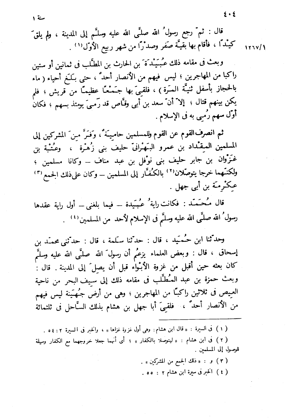 قَالَ مُحَمَّدٌ: فَكَانَتْ رَايَةُ عُبَيْدَةَ- فِيمَا بَلَغَنِي- أَوَّلَ رَايَةٍ عَقَدَهَا رسول الله ص فِي الإِسْلامِ لأَحَدٍ مِنَ الْمُسْلِمِينَ.