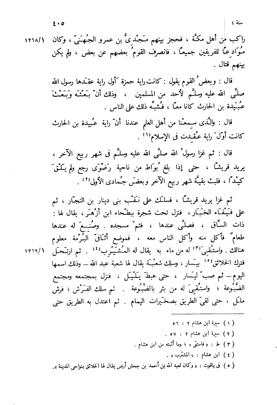 قَالَ: وَبَعْضُ الْقَوْمِ يَقُولُ: كَانَتْ رَايَةُ حَمْزَةَ أَوَّلَ رَايَةٍ عَقَدَهَا رَسُولُ اللَّهِ ص لأَحَدٍ مِنَ الْمُسْلِمِينَ، وَذَلِكَ أَنَّ بَعْثَهُ وَبَعْثَ عُبَيْدَةَ بْنَ الْحَارِثِ كَانَا مَعًا، فَشُبِّهَ ذَلِكَ عَلَى النَّاسِ.