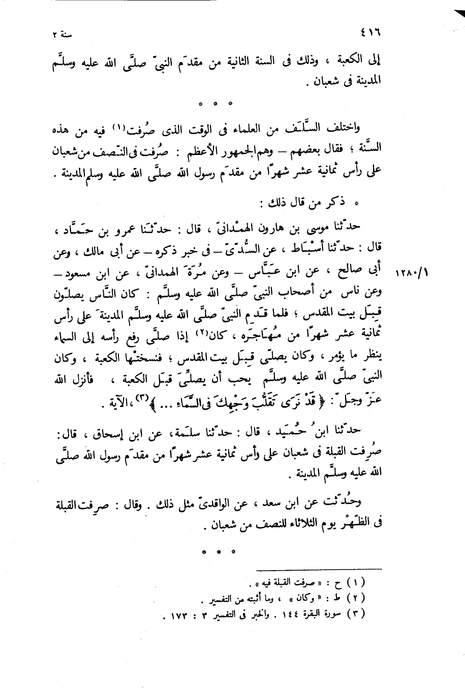 إلى الكعبة، وذلك في السنة الثانية من مقدم النبي ص المدينة في شعبان.