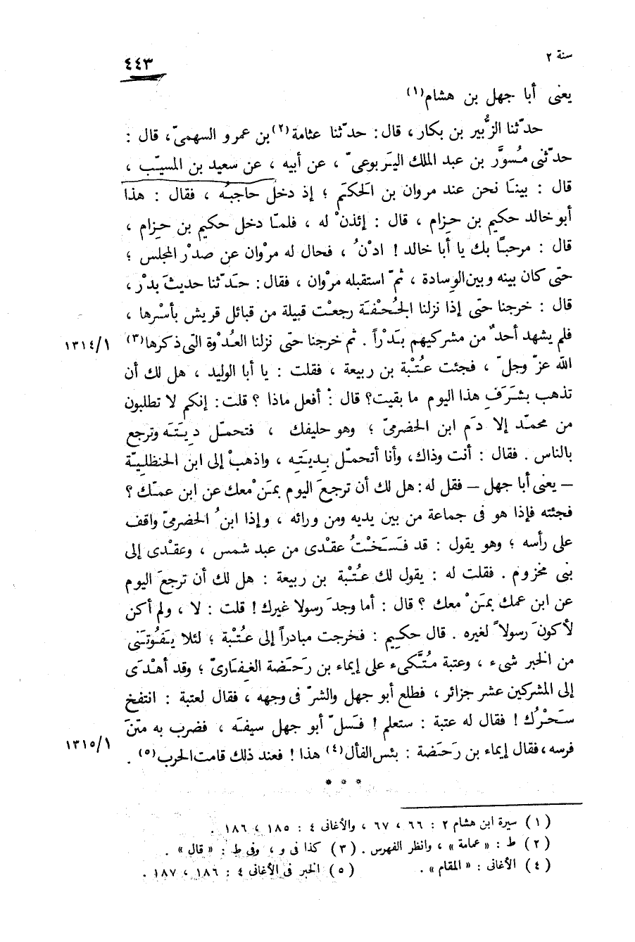 يعني أبا جهل بن هشام حدثنا الزبير بن بكار، قال: حدثنا عثامة بن عمرو السهمي، قال: