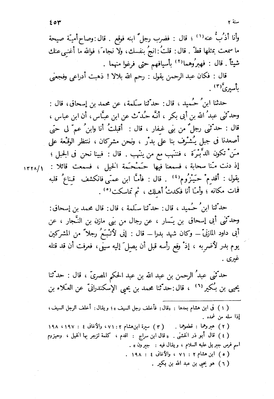 وحدثني أَبِي إِسْحَاقَ بْنِ يَسَارٍ، عَنْ رِجَالٍ مِنْ بَنِي مَازِنِ بْنِ النَّجَّارِ، عَنْ أَبِي دَاوُدَ الْمَازِنِيِّ- وَكَانَ شَهِدَ بَدْرًا- قَالَ: إِنِّي لأَتْبَعُ رَجُلا مِنَ الْمُشْرِكِينَ يَوْمَ بَدْرٍ لأَضْرِبَهُ، إِذْ وَقَعَ رَأْسُهُ قَبْلَ أَنْ يَصِلَ إِلَيْهِ سَيْفِي، فَعَرَفْتُ أَنْ قَدْ قَتَلَهُ غَيْرِي.