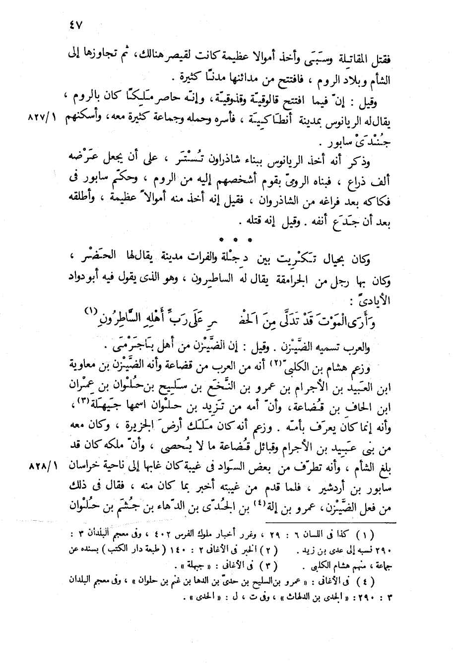 وكان بحيال تكريت بين دجلة والفرات مدينة يقال لها الحضر، وكان بها رجل من الجرامقة يقال له الساطرون، وهو الذى يقول فيه ابو دواد الإيادي: