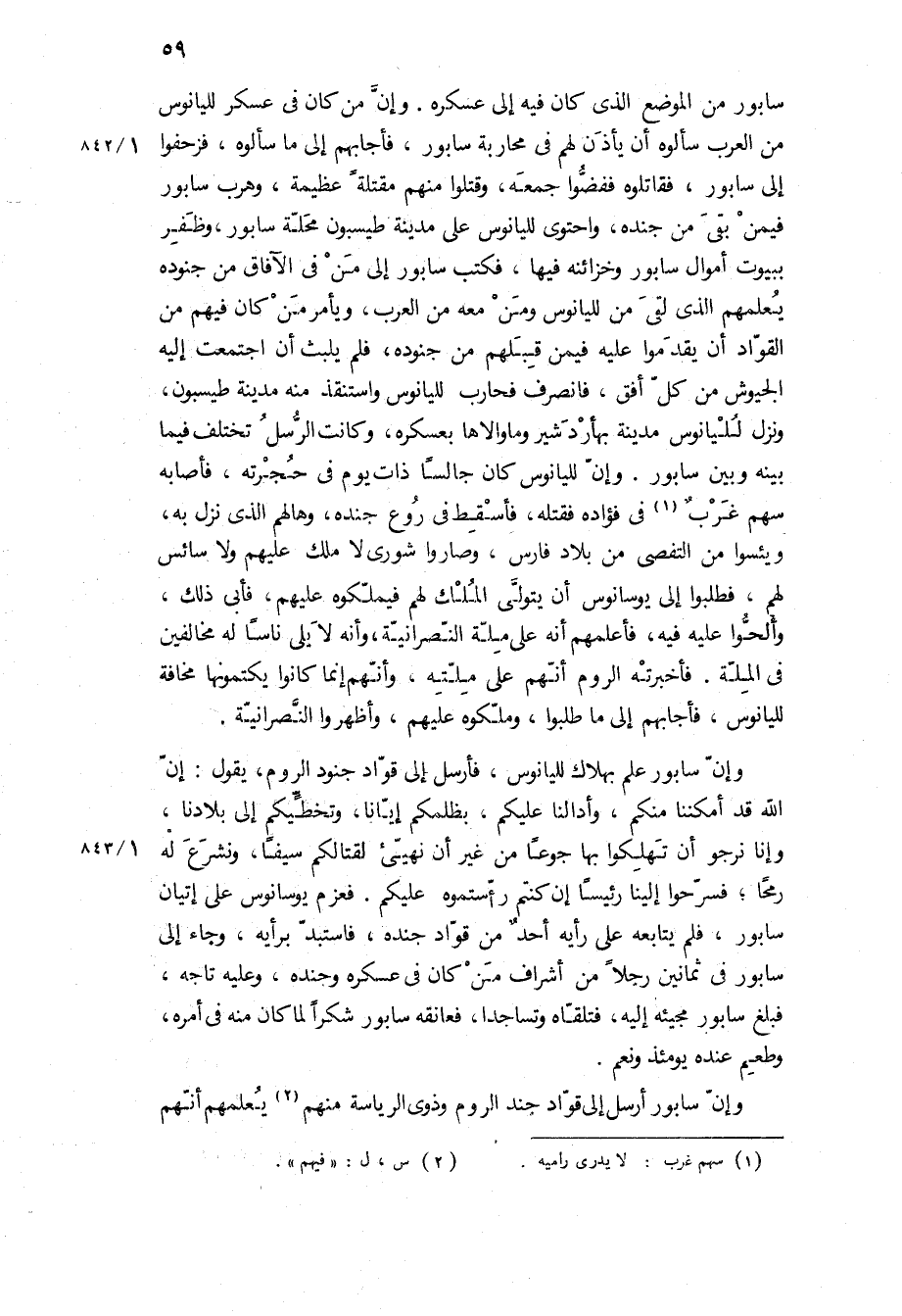 وإن سابور أرسل إلى قواد جند الروم وذوى الرياسة منهم يعلمهم أنهم