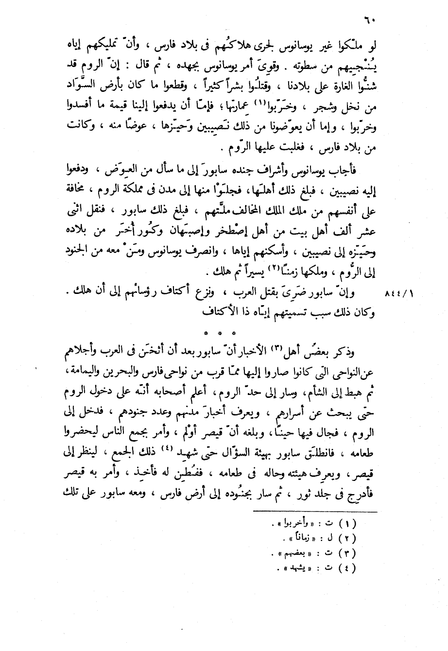 وإن سابور ضري بقتل العرب، ونزع أكتاف رؤسائهم إلى أن هلك.