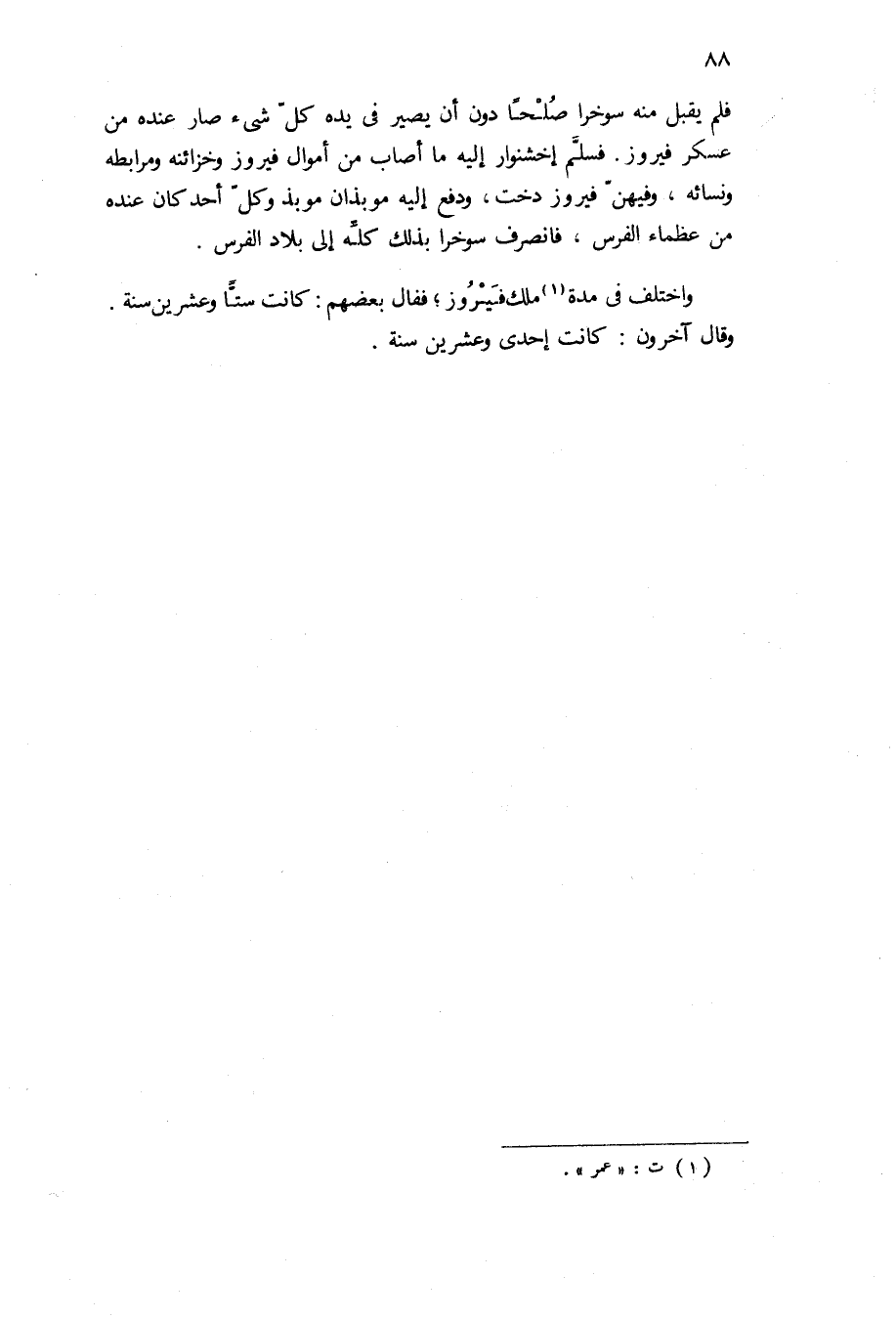 واختلف في مدة ملك فيروز، فقال بعضهم: كانت ستا وعشرين سنة.