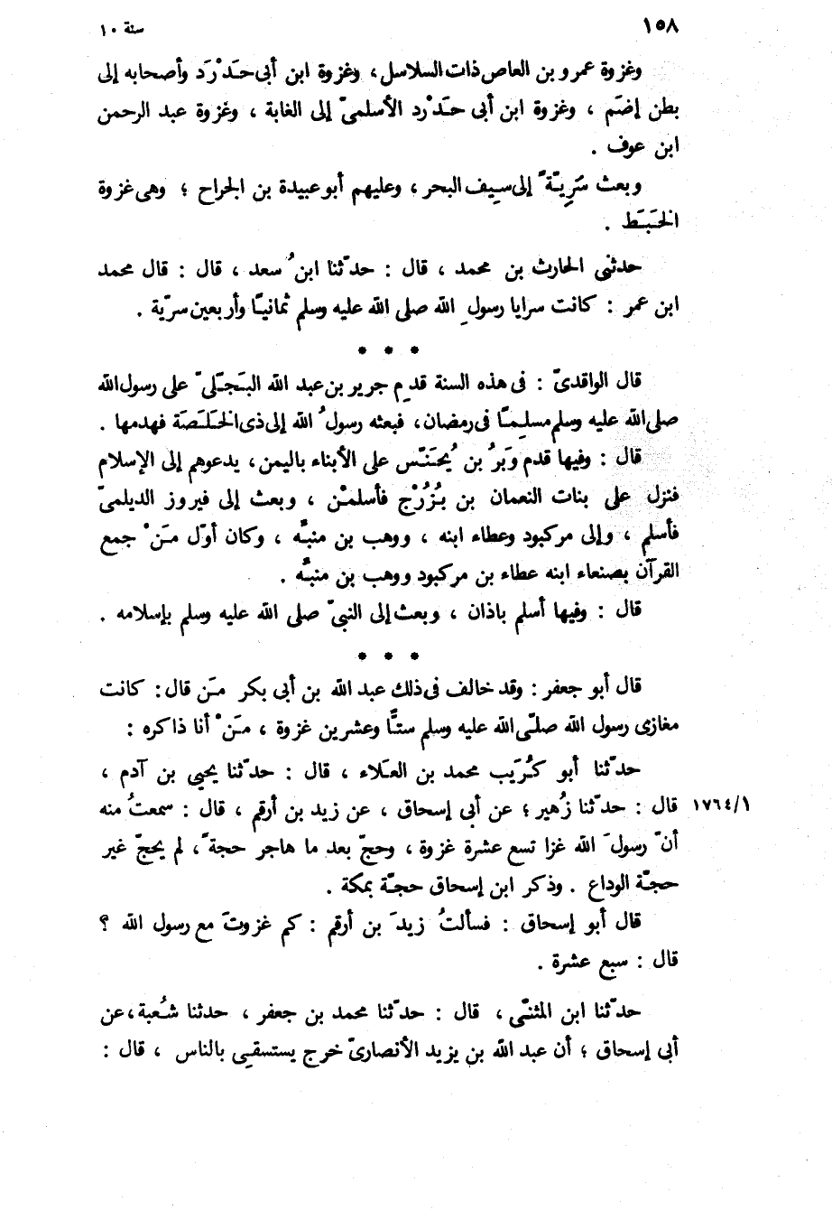 حَدَّثَنِي الْحَارِثُ بْنُ مُحَمَّدٍ، قَالَ: حَدَّثَنَا ابْنُ سعد، قَالَ: قَالَ محمد ابن عمر: كانت سرايا رسول الله ص ثمانيا وأربعين سرية.