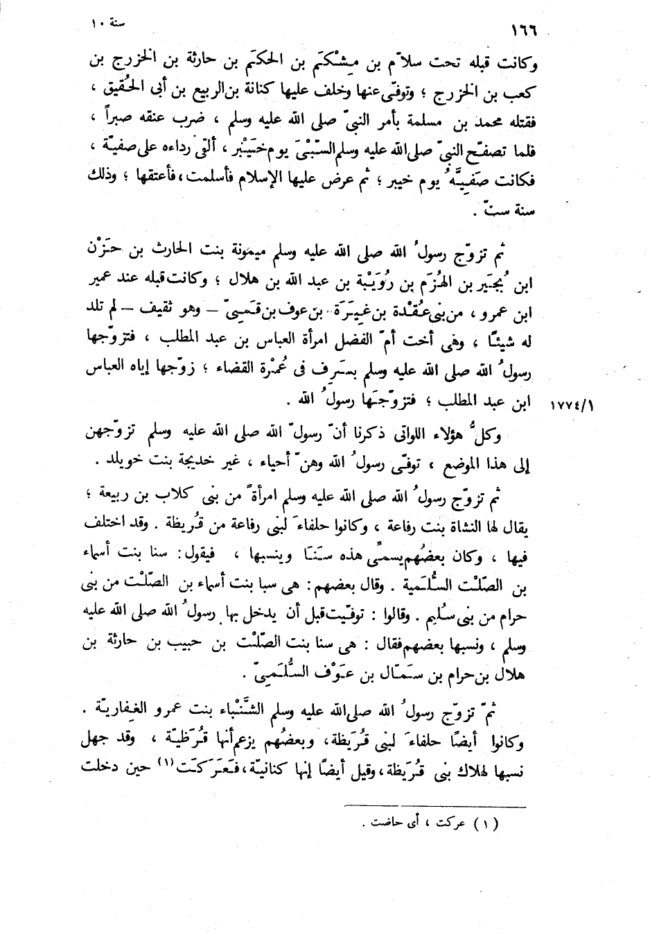 ثُمَّ تزوج رسول الله ص امرأة من بني كلاب بْن ربيعة، يقال لَهَا النشاة بنت رفاعة، وكانوا حلفاء لبني رفاعة من قريظة وقد اختلف فيها، وَكَانَ بعضهم يسمي هذه سنا وينسبها، فيقول: سنا بنت أسماء بْن الصلت السلمية وقال بعضهم: هي سبا بنت أسماء بْن الصلت من بني حرام من بني سليم وقالوا: توفيت قبل ان يدخل بها رسول الله ص، ونسبها بعضهم فَقَالَ: هي سنا بنت الصلت بْن حبيب بْن حارثة بْن هلال بْن حرام بْن سمال بْن عوف السلمي.