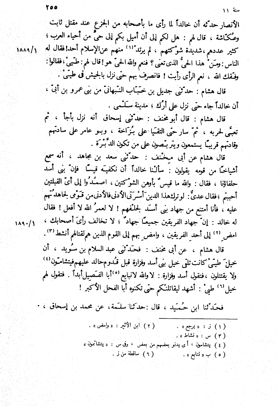 قَالَ هِشَامٌ، عَنْ أَبِي مِخْنَفٍ: فَحَدَّثَنِي عَبْدُ السَّلامِ بْنُ سُوَيْدٍ، أَنَّ خَيْلَ طَيِّئٍ كَانَتْ تَلْقَى خَيْلَ بَنِي أَسَدٍ وَفَزَارَةَ قَبْلَ قُدُومِ خالد عليهم فيتشامون وَلا يَقْتَتِلُونَ، فَتَقُولُ أَسَدٌ وَفَزَارَةُ: لا وَاللَّهِ لا نُبَايِعُ أَبَا الْفَصِيلِ أَبَدًا فَتَقُولُ لَهُمْ خَيْلُ طَيِّئٍ: أَشْهَدُ لَيُقَاتِلَنَّكُمْ حَتَّى تُكَنُّوهُ أَبَا الْفَحْلِ الأَكْبَرِ! فحدثنا ابْنُ حُمَيْدٍ، قَالَ: حَدَّثَنَا سَلَمَةُ، عَنْ مُحَمَّدِ بن إسحاق،