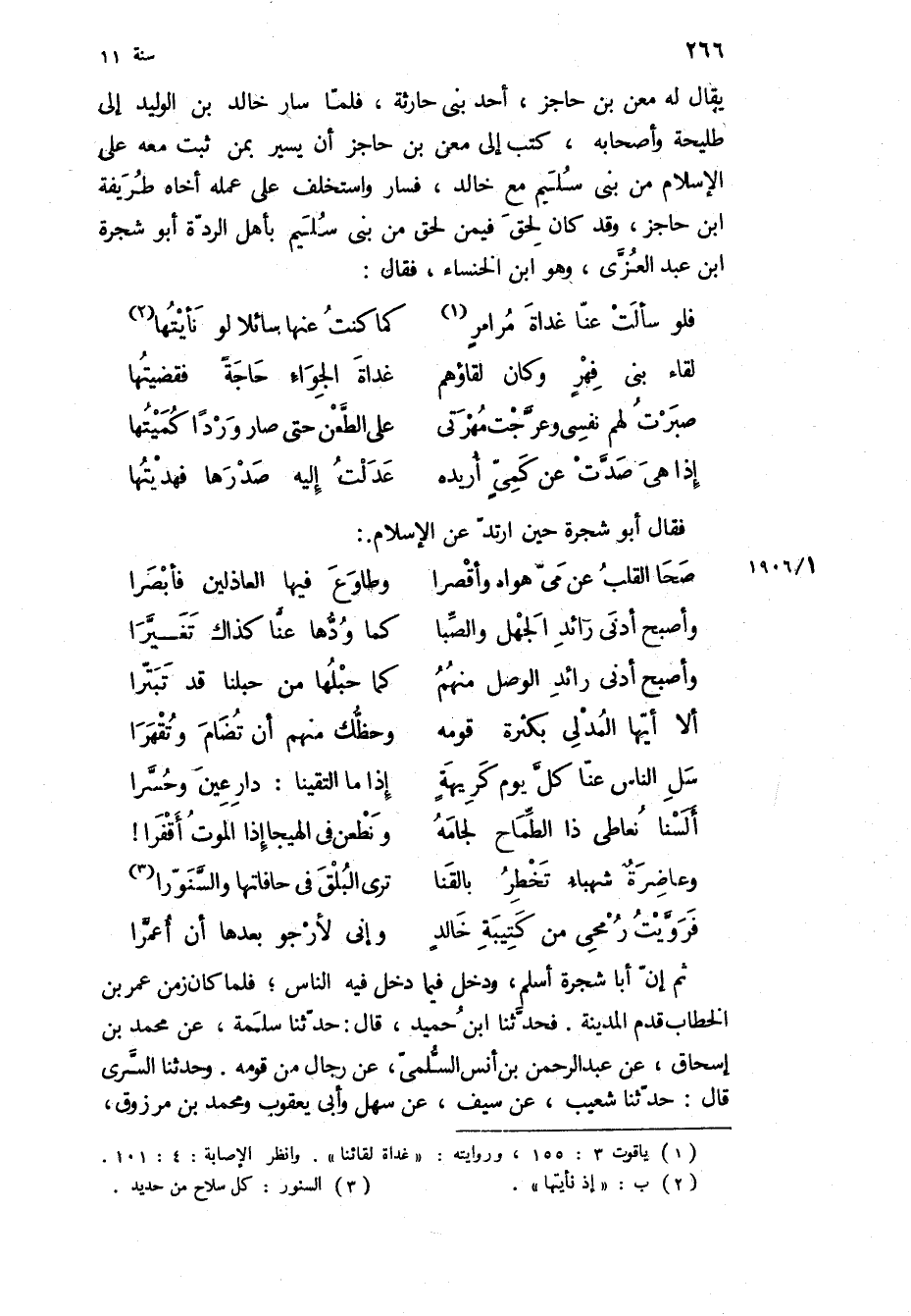 ثم ان أَبَا شَجَرَةَ أَسْلَمَ، وَدَخَلَ فِيمَا دَخَلَ فِيهِ النَّاسُ، فَلَمَّا كَانَ زَمَنُ عُمَرَ بْنِ الْخَطَّابِ قَدِمَ الْمَدِينَةَ فَحَدَّثَنَا ابْنُ حُمَيْدٍ، قَالَ: حَدَّثَنَا سَلَمَةُ، عَنْ مُحَمَّدُ بْنُ إِسْحَاقَ، عَنْ عَبْدِ الرَّحْمَنِ بْنِ أَنَسٍ السُّلَمِيِّ، عَنْ رِجَالٍ مِنْ قَوْمِهِ وَحَدَّثَنَا السَّرِيُّ قَالَ: حَدَّثَنَا شُعَيْبٌ، عَنْ سَيْفٍ، عَنْ سَهْلٍ وَأَبِي يَعْقُوبَ وَمُحَمَّدِ بْنِ مرزوق،