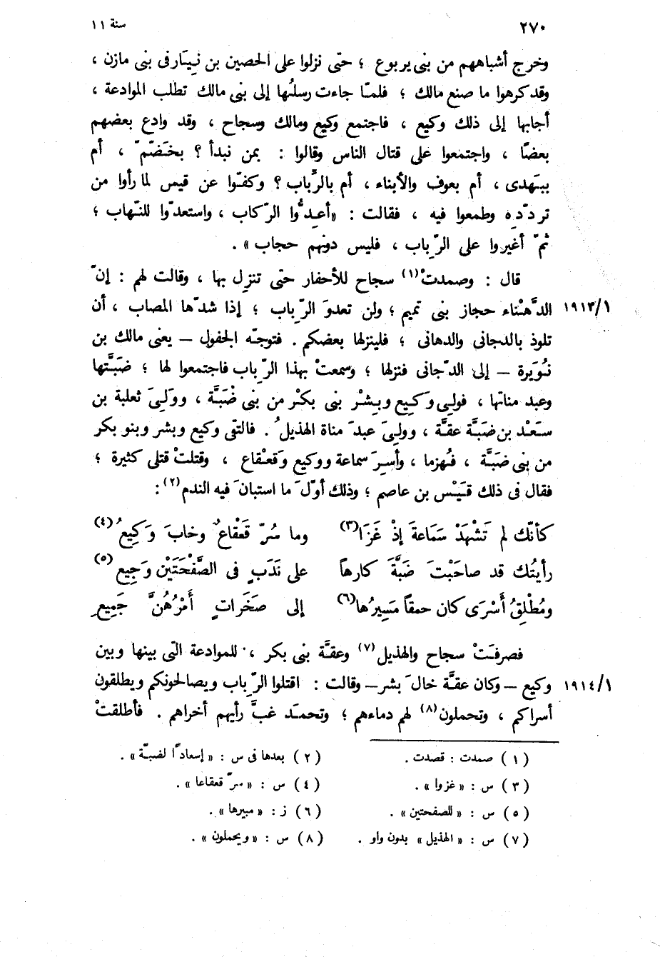 فصرفت سجاح والهذيل وعقة بني بكر، للموادعة التي بينها وبين وكيع- وَكَانَ عقة خال بشر- وقالت: اقتلوا الرباب ويصالحونكم ويطلقون أسراكم، وتحملون لهم دماءهم، وتحمد غب رأيهم أخراهم فاطلقت