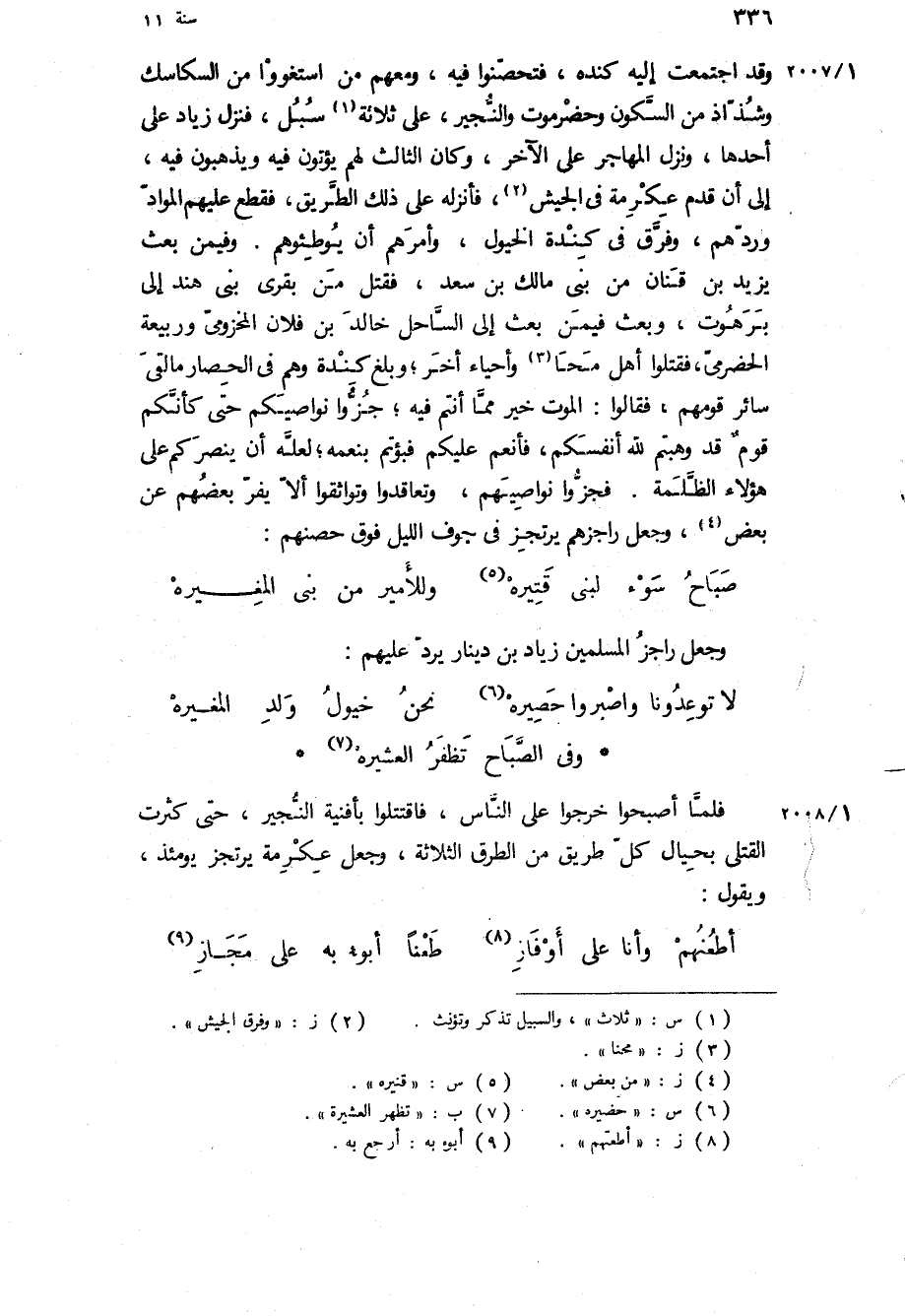 فلما أصبحوا خرجوا على الناس، فاقتتلوا بأفنية النجير، حتى كثرت القتلى بحيال كل طريق من الطرق الثلاثة، وجعل عكرمة يرتجز يومئذ، ويقول: